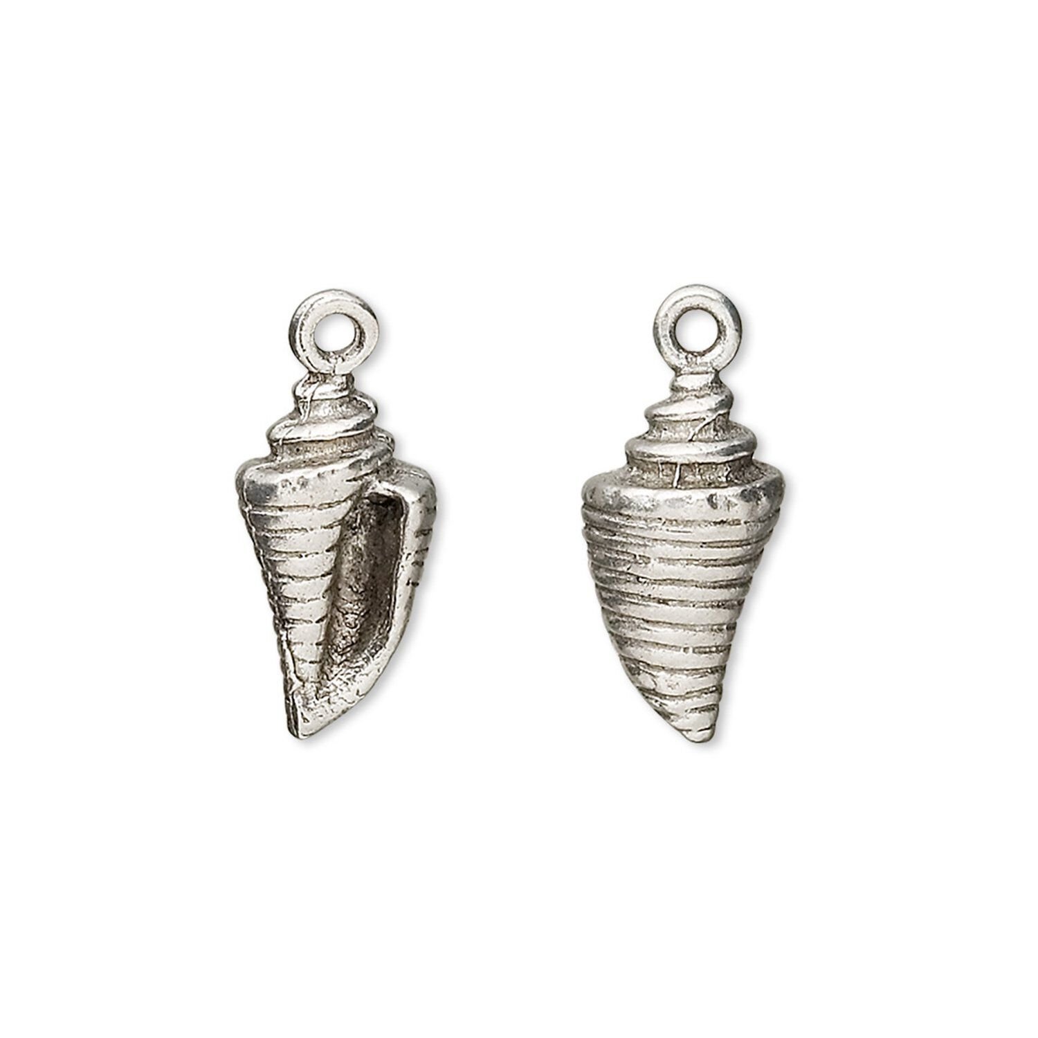Charm, antiqued pewter (tin-based alloy), 15x8mm cone shell. Sold per pkg of 4.