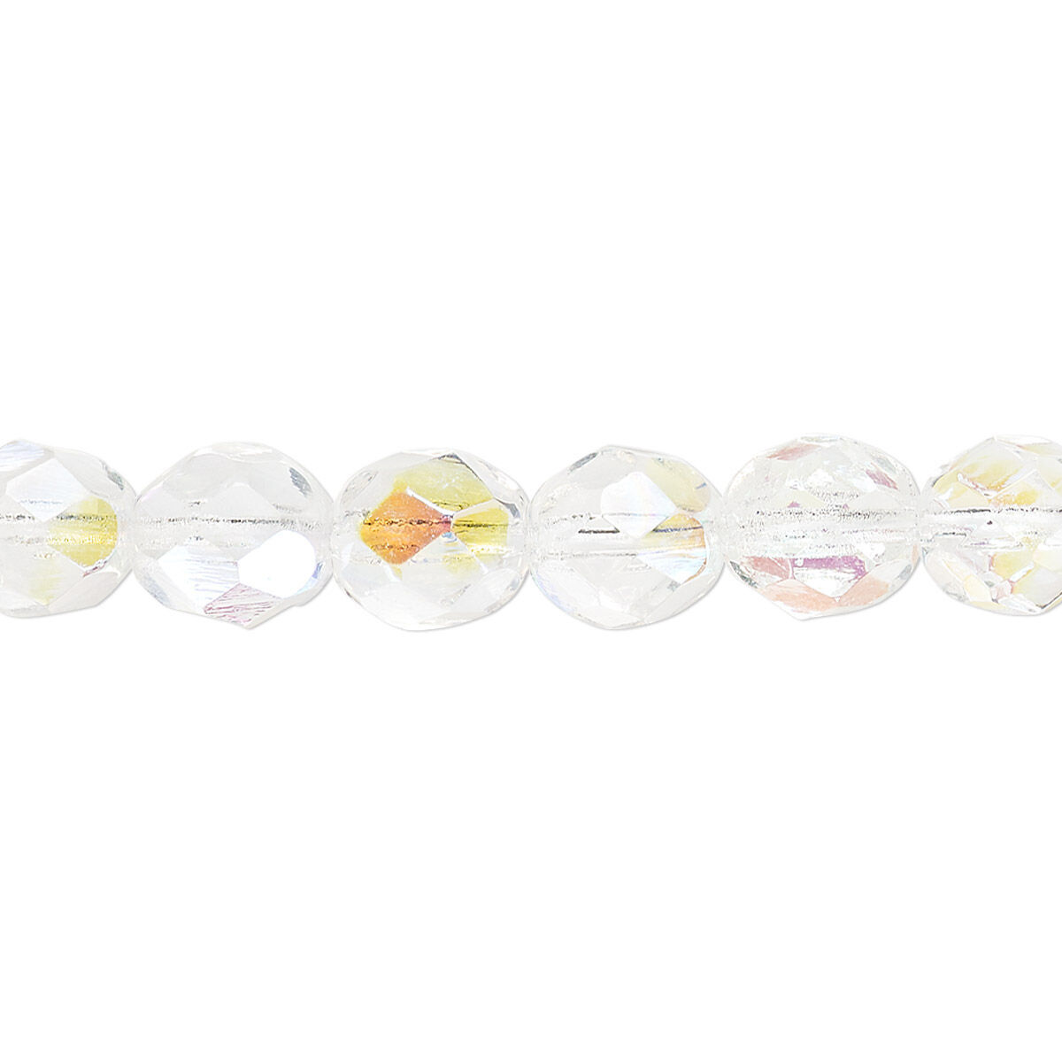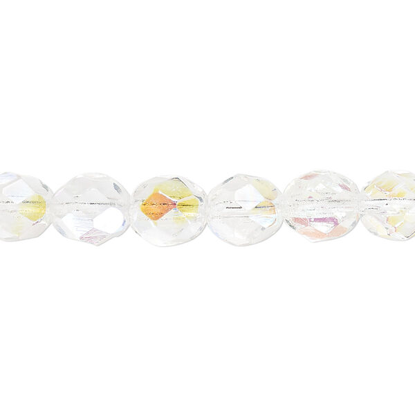 These beads, imported from the Czech Republic, are machine-faceted, then polished by glazing inside a red-hot oven. This gives them beautiful, glistening colors with a "softer" look and a smoother feel at a considerably lower price than the machine-polished Austrian crystal. They are temporarily strung in 16-inch strands or equivalent in loose beads. Slight imperfections are to be expected and add to the allure of these much sought after beads. Size and shape may vary slightly and color may vary from dye lot to dye lot.