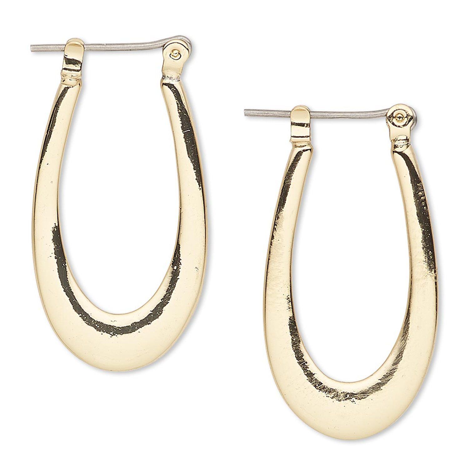 Earring, gold-finished steel and "pewter" (zinc-based alloy), 31mm with teardrop hoop with latch-back closure. Sold per pair.