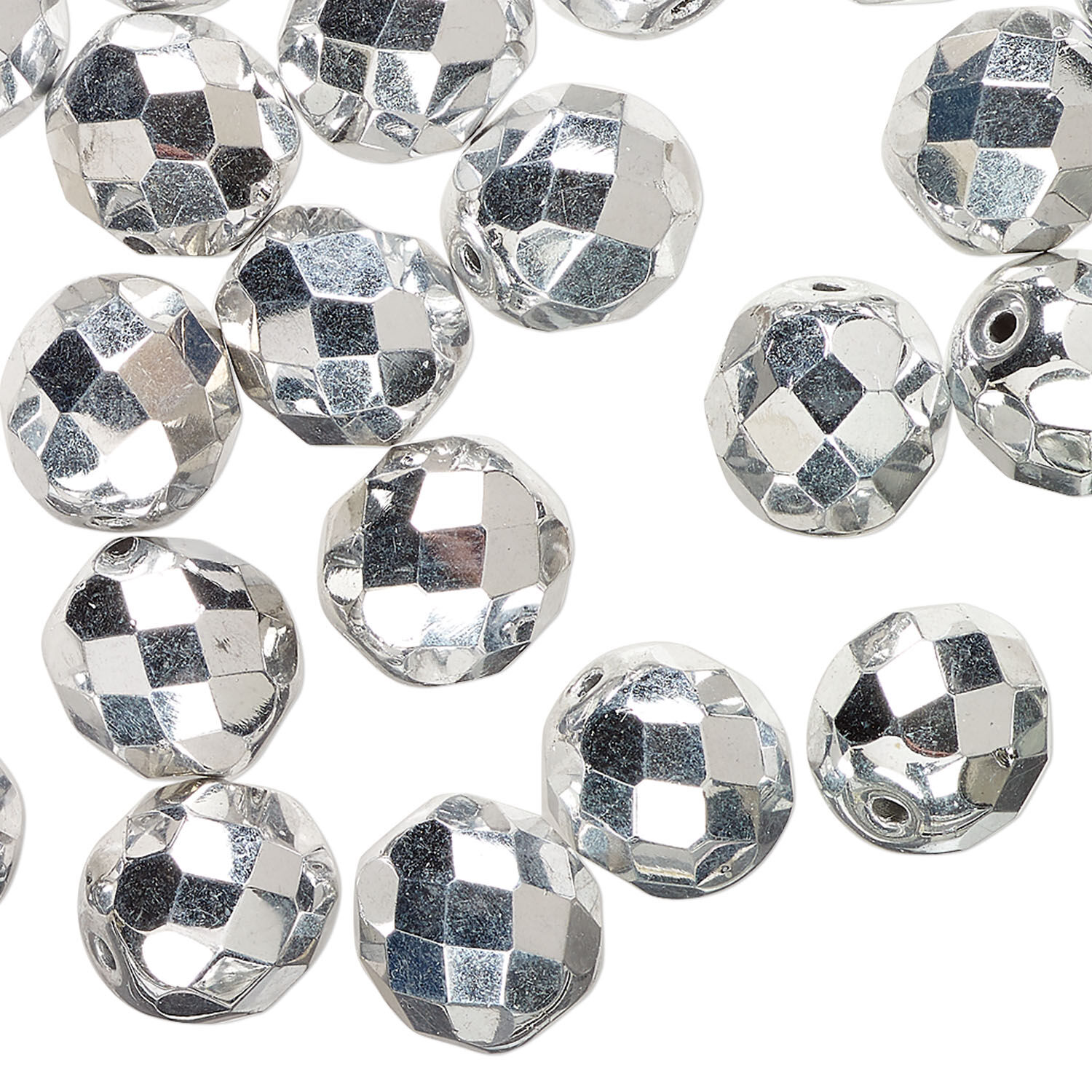 Bead 1pkg40 Czech fire-polished glass, metallic silver, 10mm faceted round.
