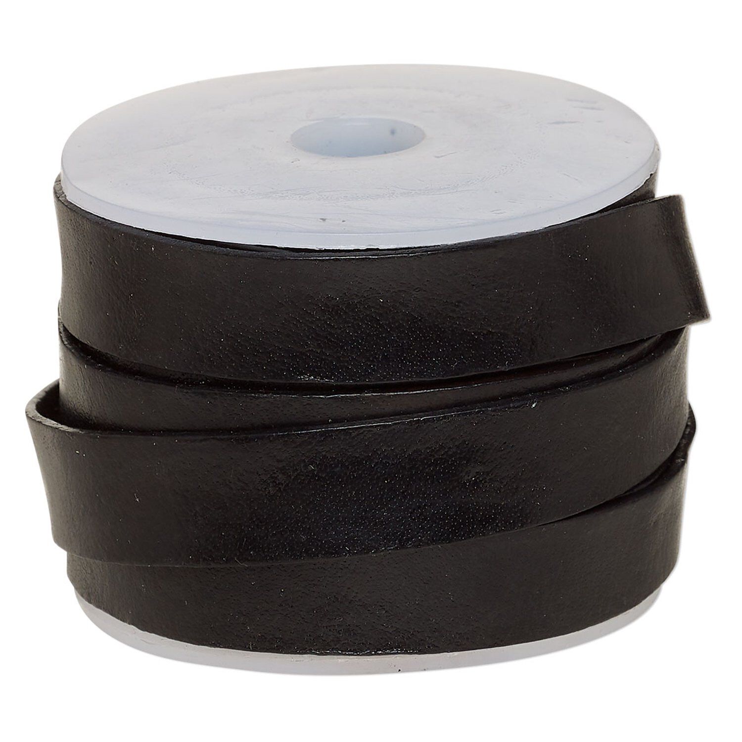 Cord, leather, black, 12mm flat. Sold per 5-yard spool.