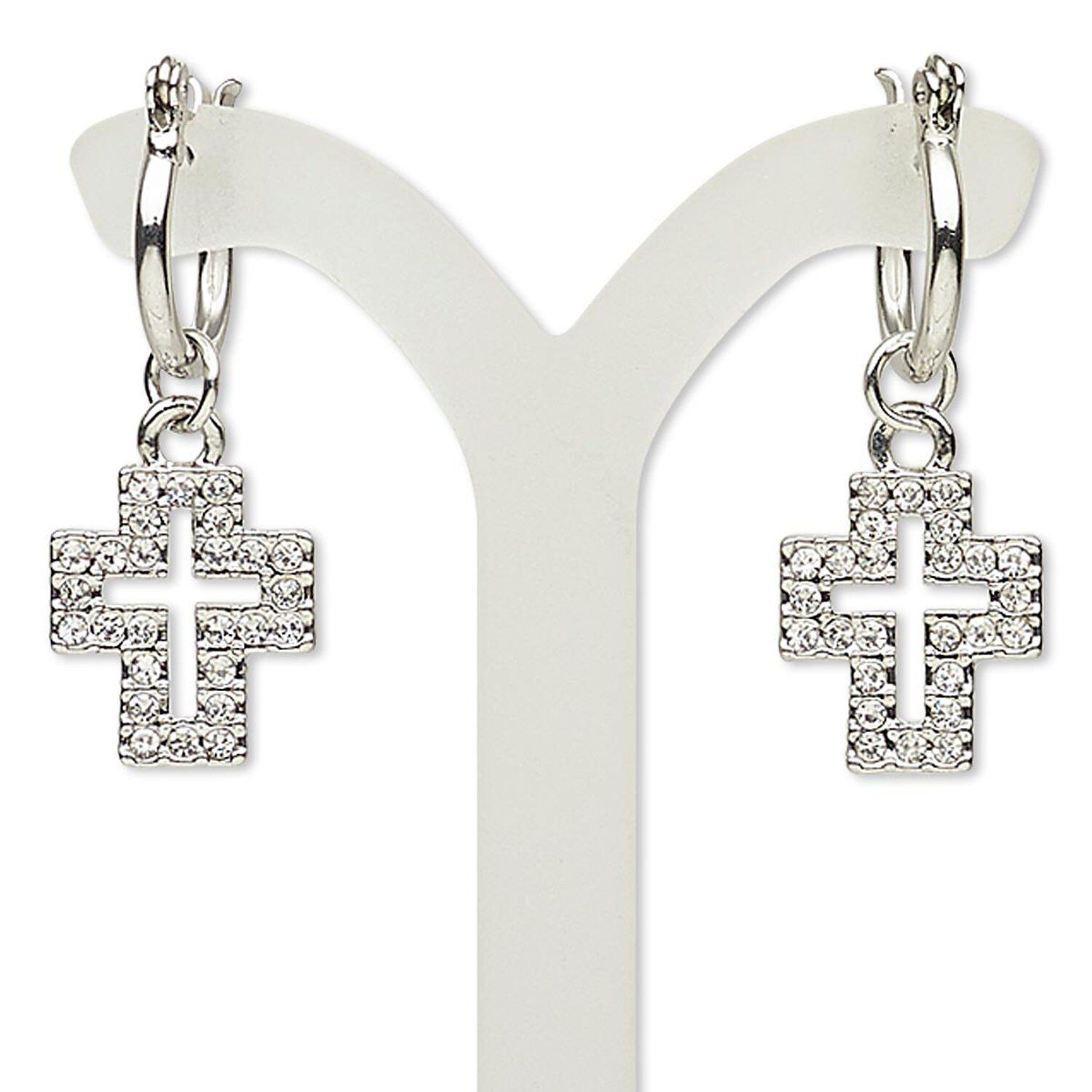 A great addition to jewelry lines, these earrings feature cutout cross dangles set with clear glass rhinestones.