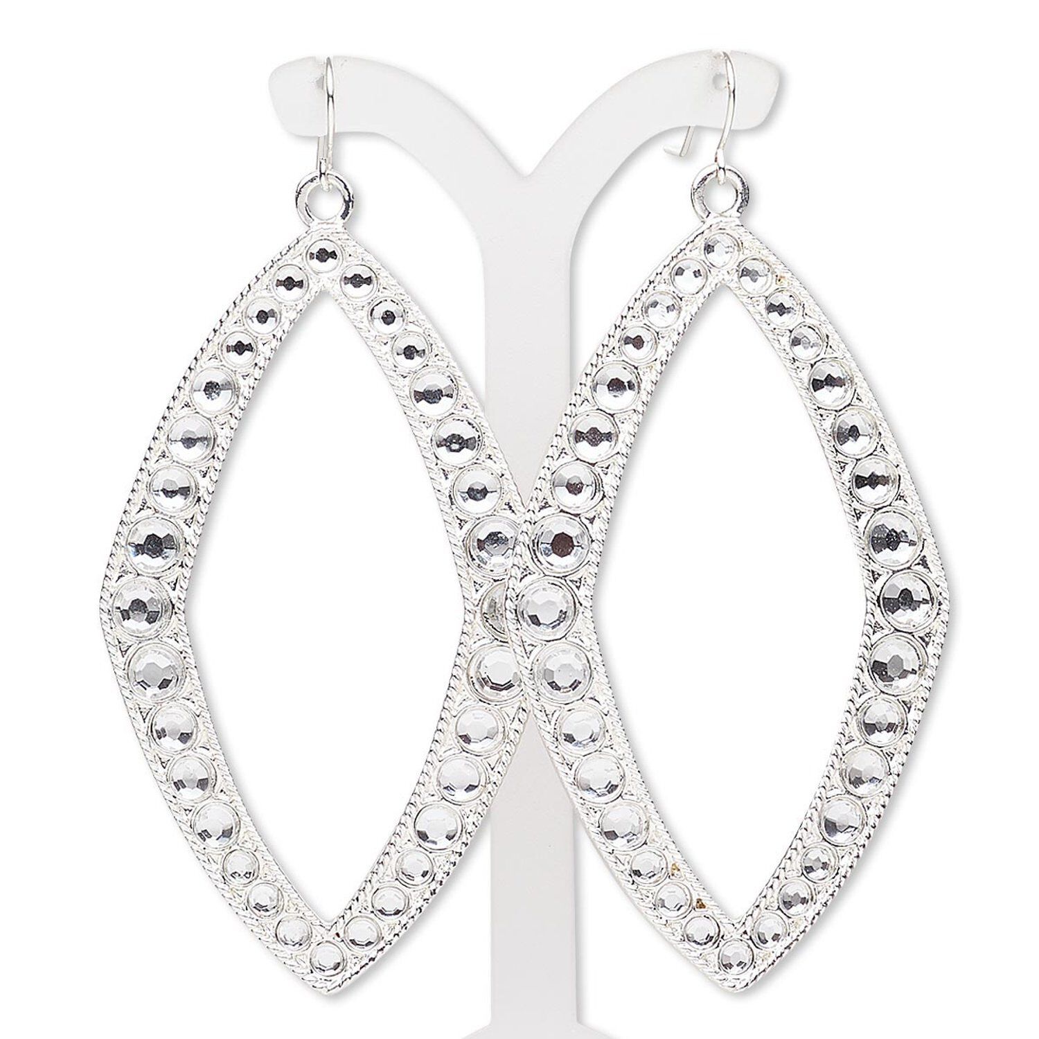 A great addition to jewelry lines, these earrings feature large open diamond shapes set with clear acrylic rhinestones.