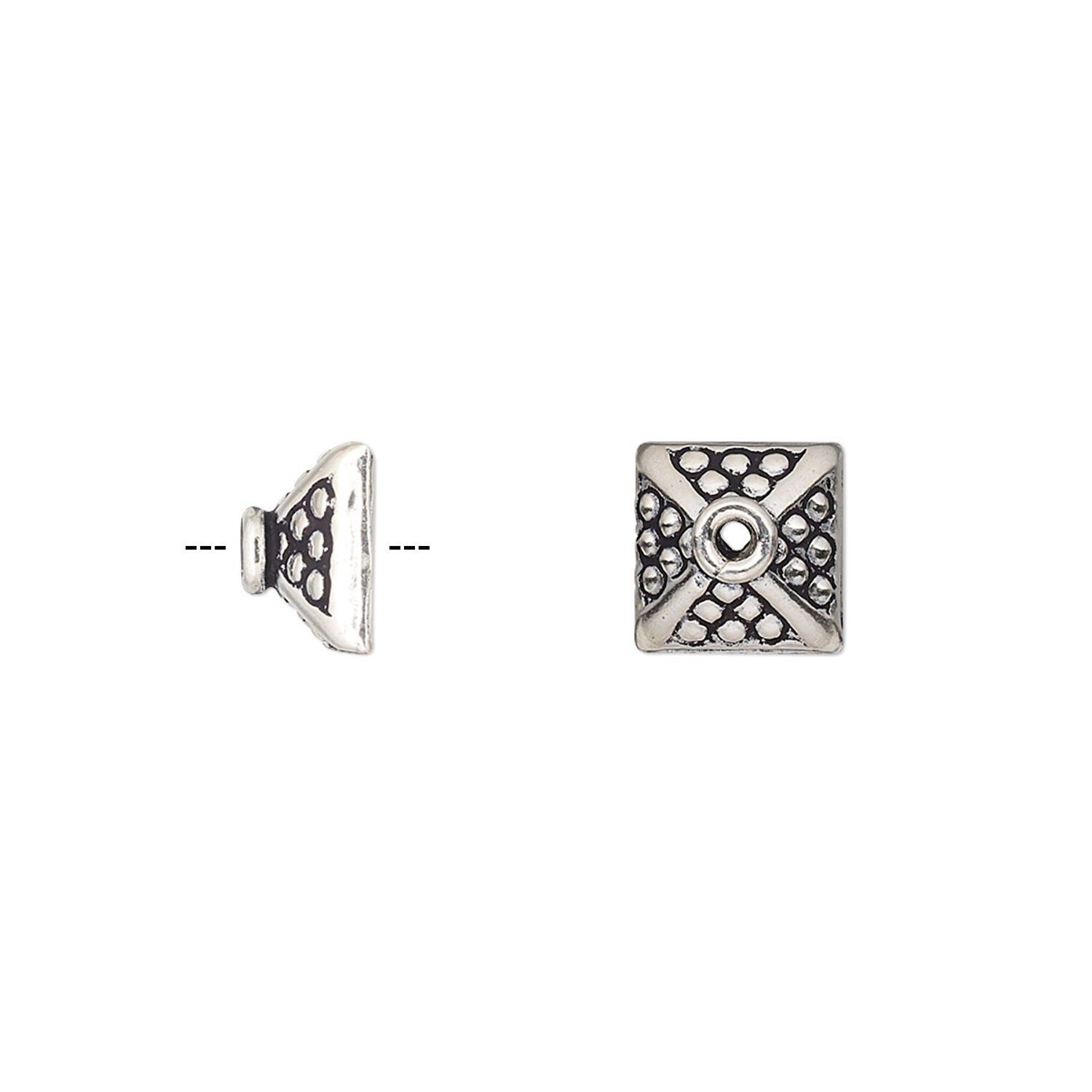Bead cap, antiqued sterling silver, 9x5mm beaded square, fits 7-8mm bead. Sold per pkg of 2.