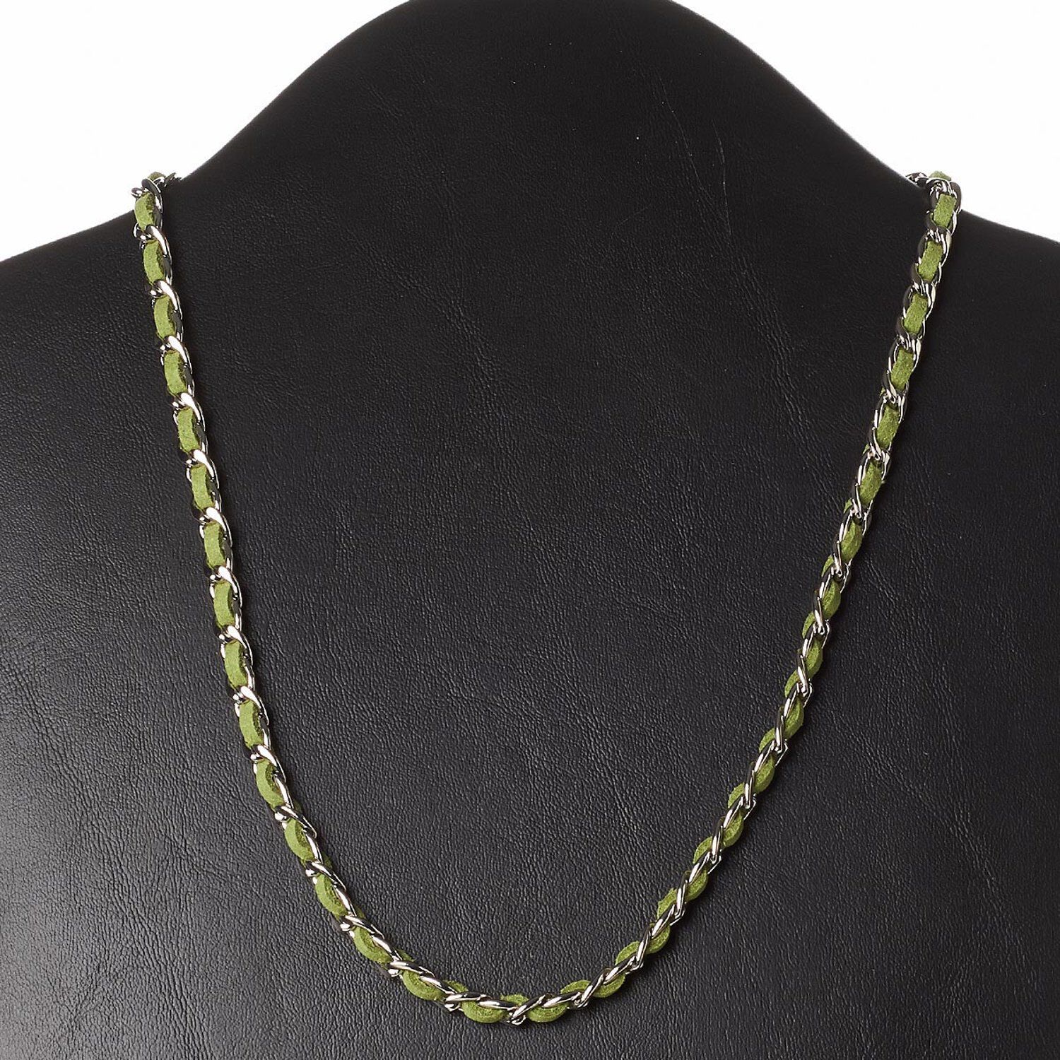 Necklace, faux suede / imitation rhodium-plated steel / silver-finished brass, light forest green, 6mm wide, 18 inches with 2-inch extender chain and lobster claw clasp. Sold individually.