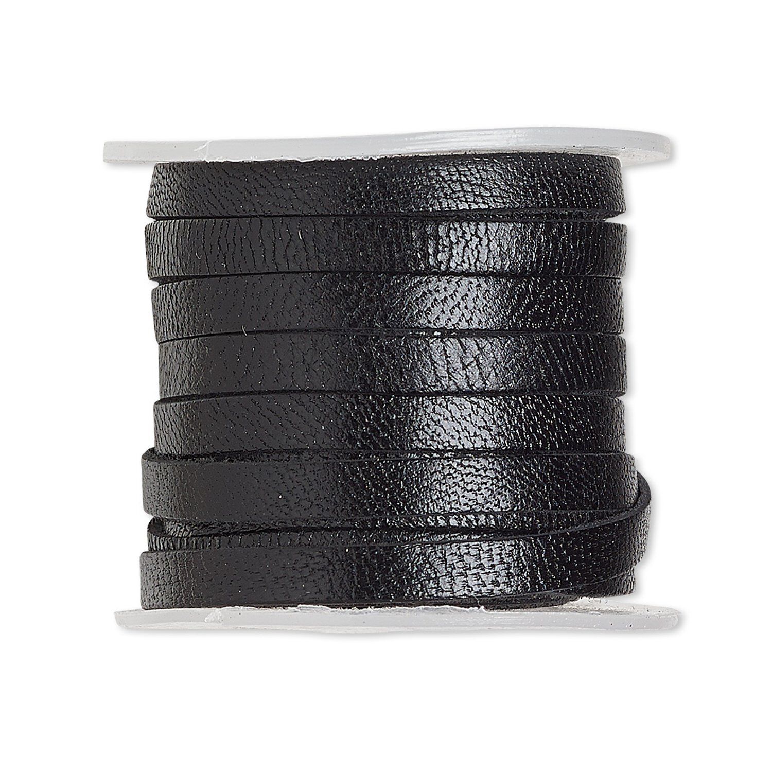 Cord, leather (dyed), black, 3mm flat. Sold per 25-yard spool.