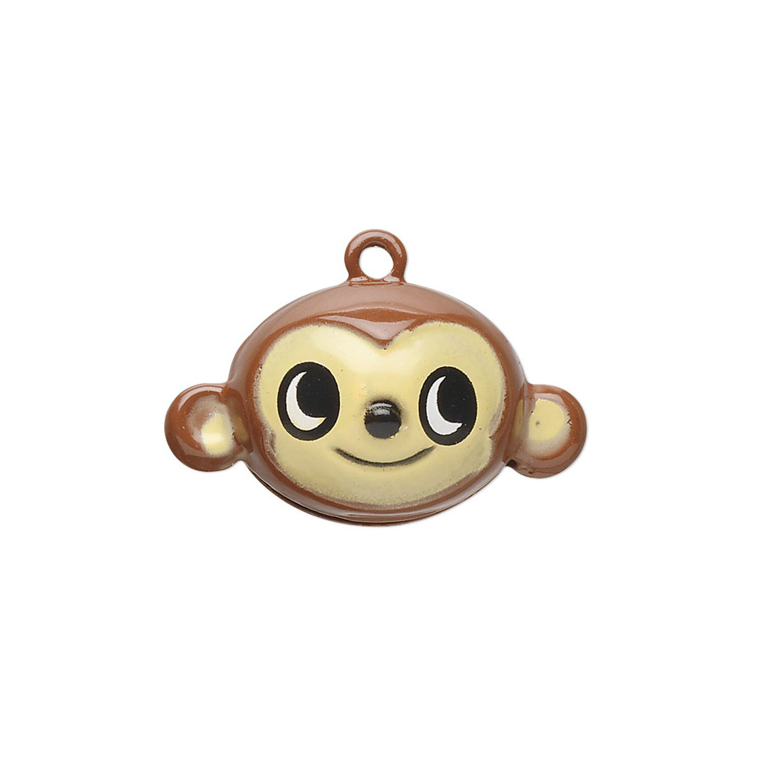 Bell, brass and enamel, multicolored, 24x14mm monkey head with clapper. Sold per pkg of 6.
