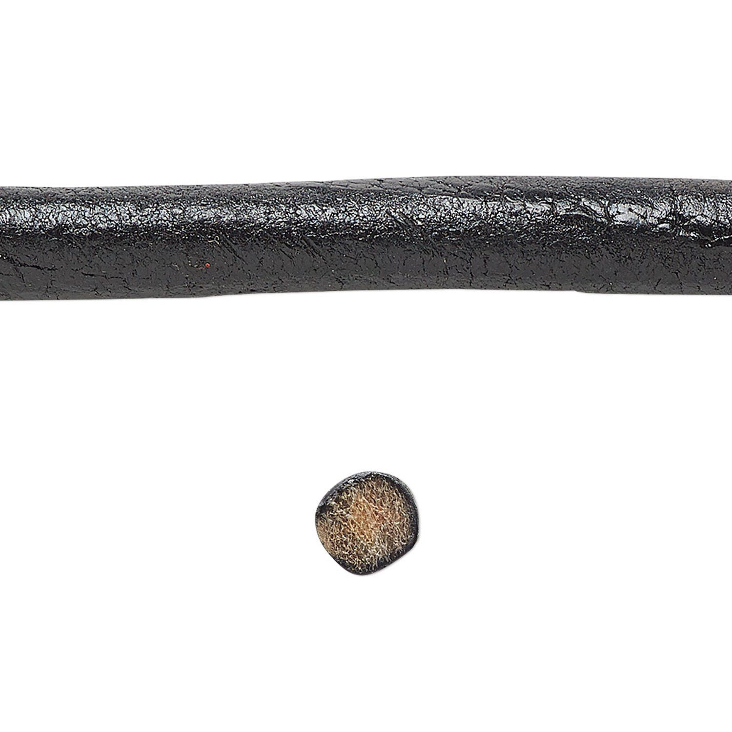 Cord, leather, black, 6mm round. Sold per pkg of 1 yard.