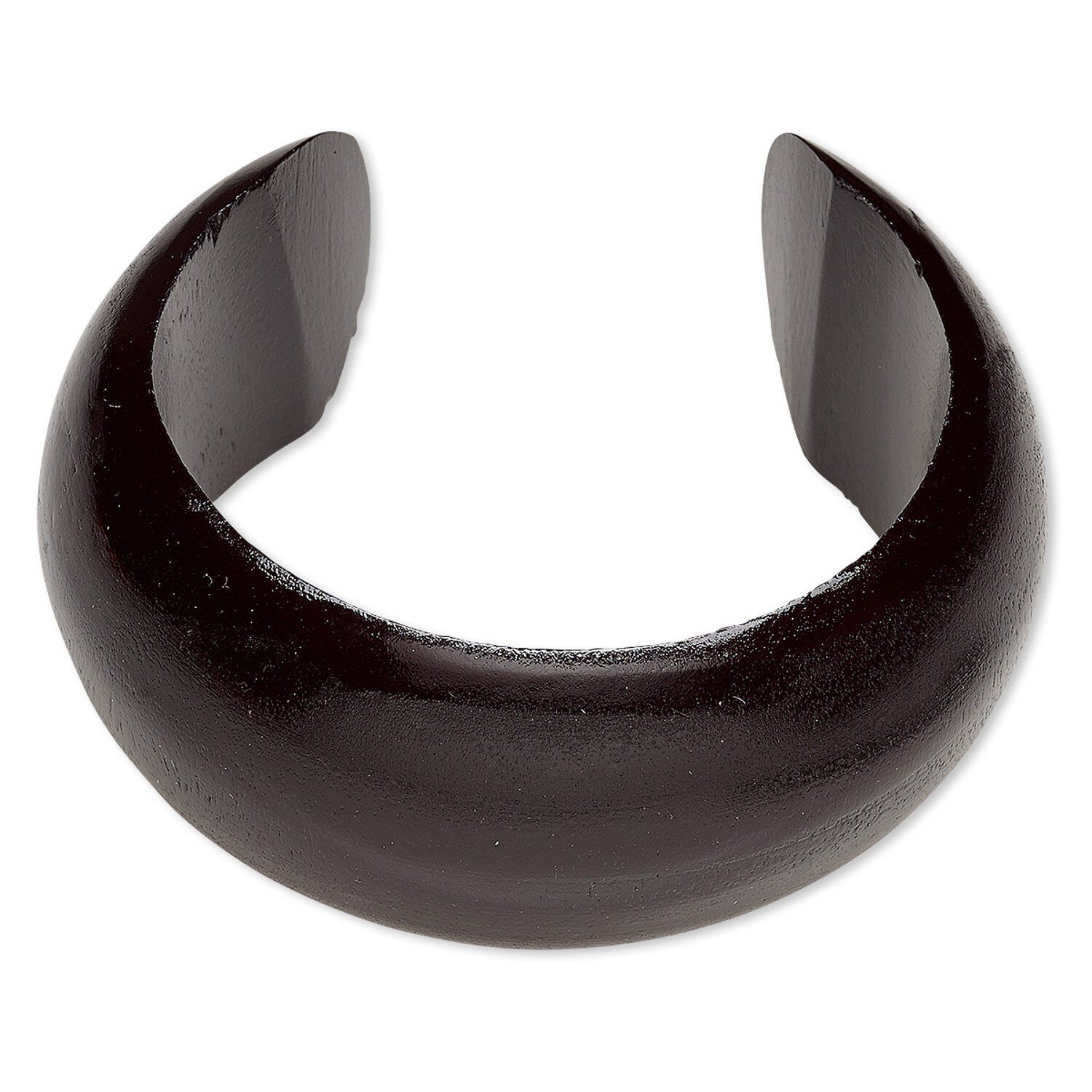 This wood cuff bracelet has a vibe that's both polished and natural; it looks great alone or when worn among a group of stacked bracelets. This cuff displays well for resale and will make an appealing jewelry line addition. The black cuff features a hand-carved rounded band. Sizes, shapes and colors may vary with handcrafted items.