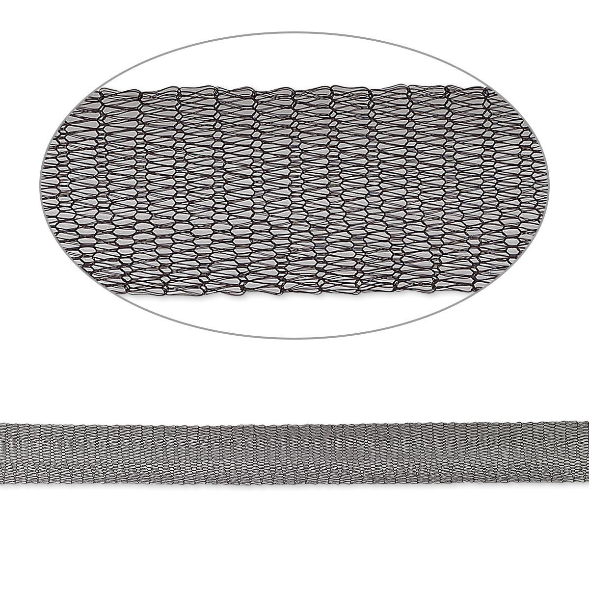 Mesh ribbon, enameled brass, black, 12mm tubular, fits up to 18mm bead. Sold per 1-meter pkg.