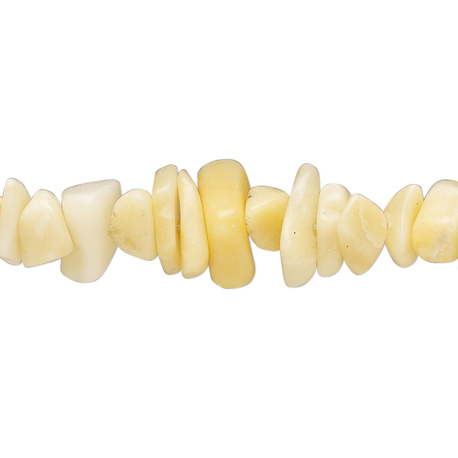 Add organic-style touch to jewelry designs with rich, golden jade. The warm earth tones mix with wood beads, pearls, bone and other natural materials. Chips range from small to extra-large with an average size of medium.