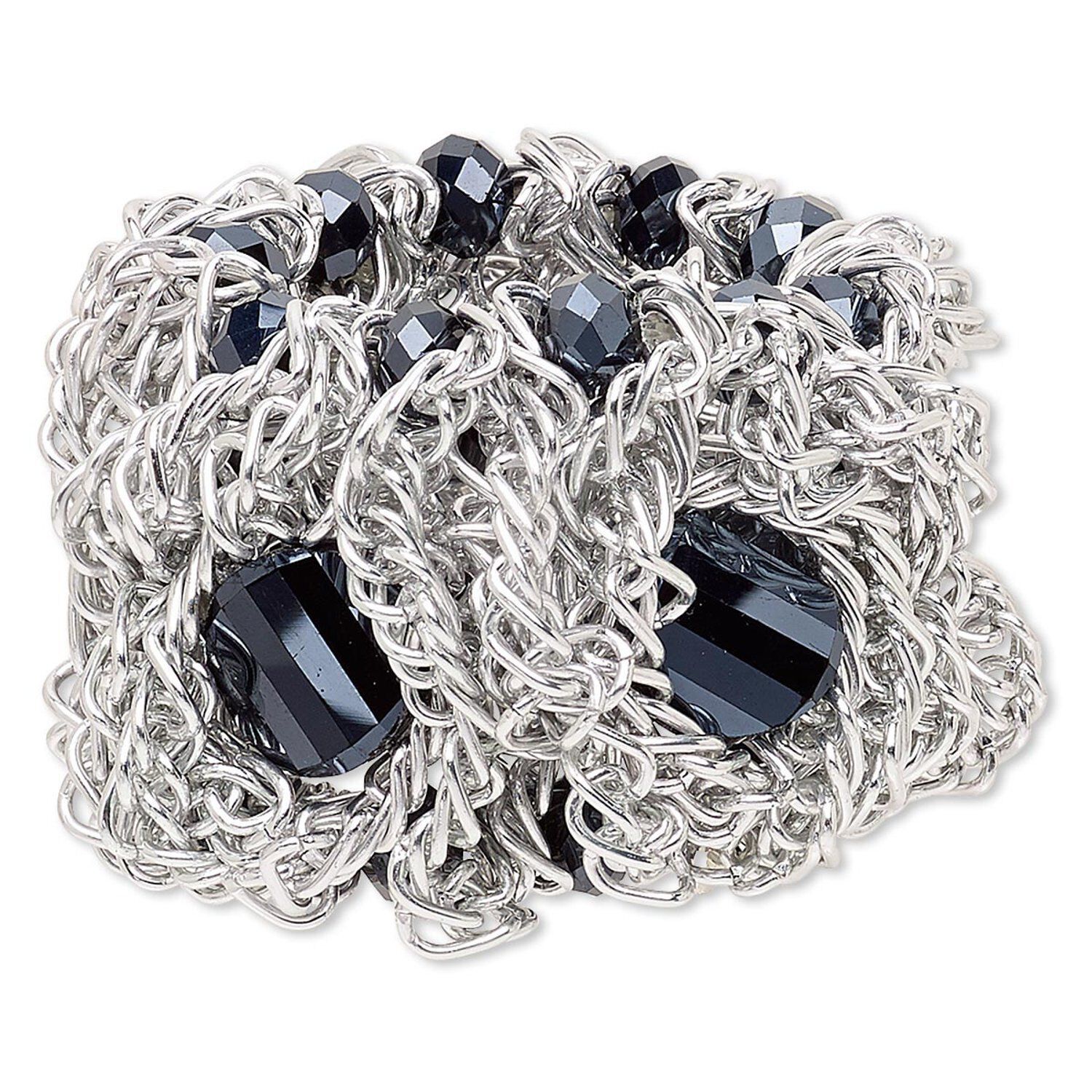 Bracelet, stretch, aluminum and glass, black, 50mm wide, 5-1/2 inches. Sold individually.