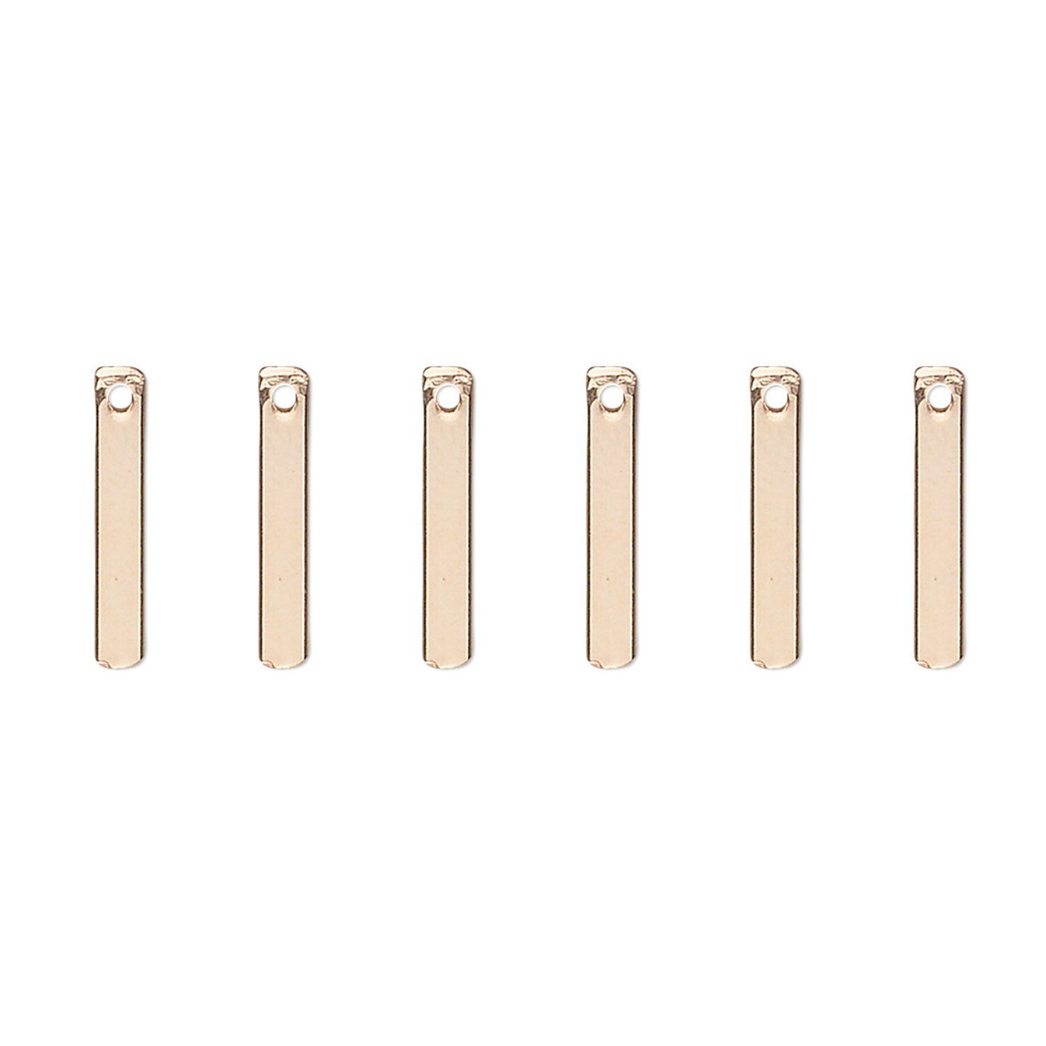 Drop, 14Kt gold-filled, 13x2mm smooth bar. Sold per pkg of 6.