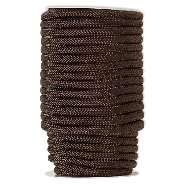 Cord, nylon, dark brown, 8mm braided. Sold per 60-foot spool.