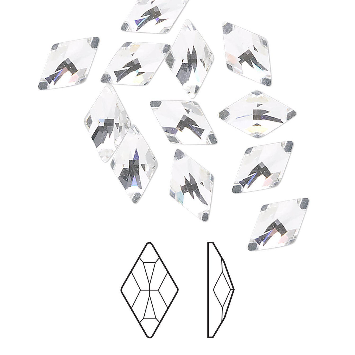 Fabulously faceted diamond-shape flat back rhinestones from Crystal Passions® crystal components. Called rhombus, the versatile and brilliant flat back can be used on bridal veils, shoes, earstuds, as buttons, add to polymer clay designs, and more. The flat backs have a silver-foil backing that adheres with a jeweler's glue, such as G-S Hypo Cement or Jewel Bond™.