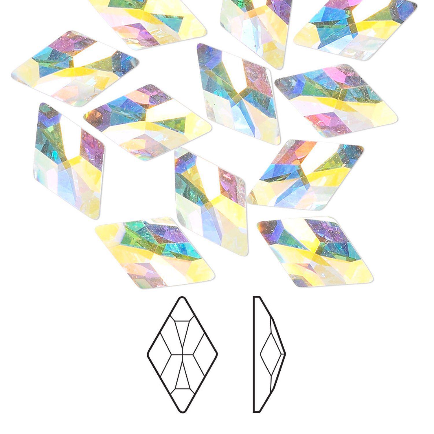 Swarovski flat back rhinestones in a fabulously faceted diamond-shape—known as rhombus. Use the rhombus flat backs on bridal veils, shoes, earstuds, as buttons, add to polymer clay designs and more. The flat backs have a silver-foil backing that adheres with a jeweler's glue, such as G-S Hypo Cement® or Jewel Bond™.