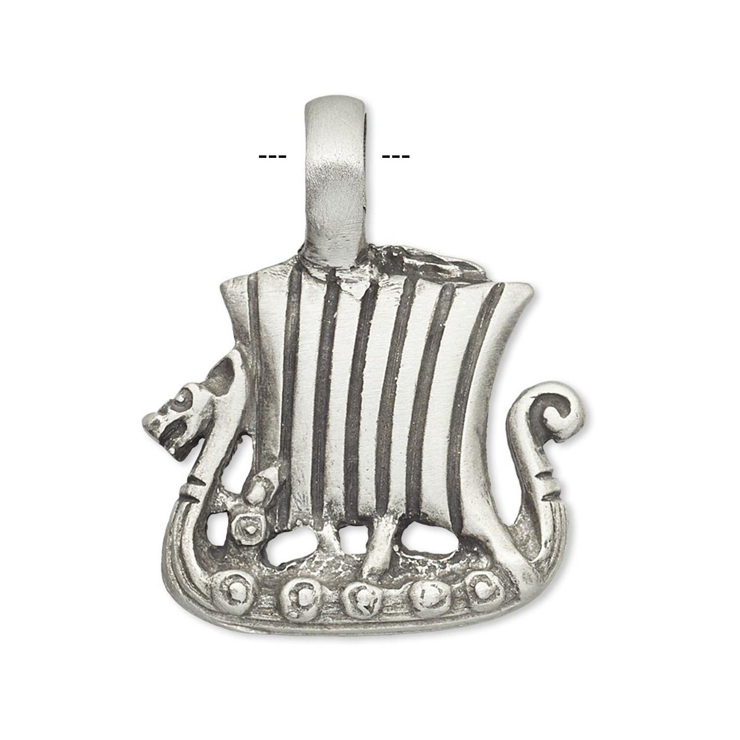 Pendant, antique pewter (tin-based alloy), 32x27mm Viking ship. Sold individually.