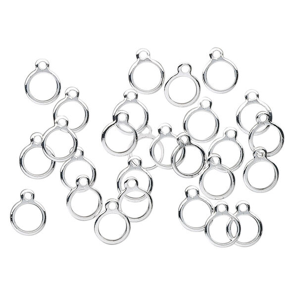 Drop, silver-plated brass, 7mm open round. Sold per pkg of 100.