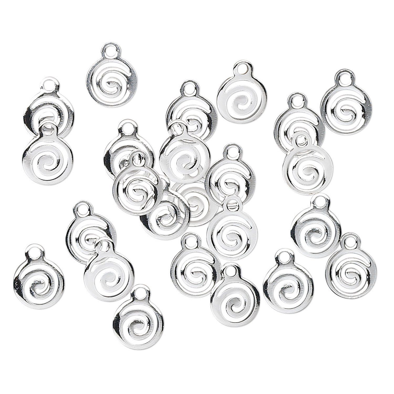 Drop, silver-plated brass, 7mm round swirl. Sold per pkg of 100.