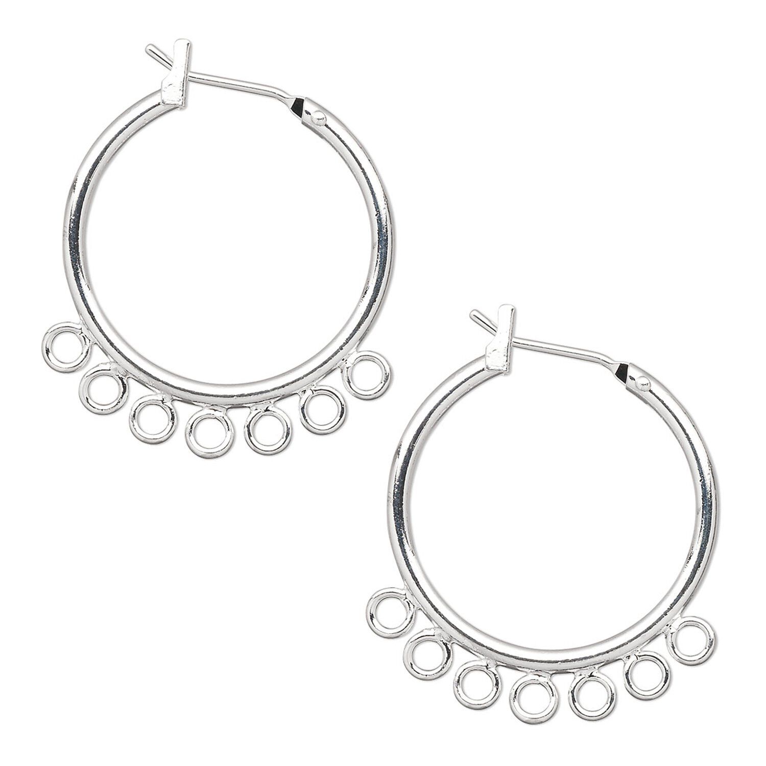 Earring, silver-plated brass, 23mm round hoop with 7 closed loops and latch-back closure. Sold per pkg of 5 pairs.