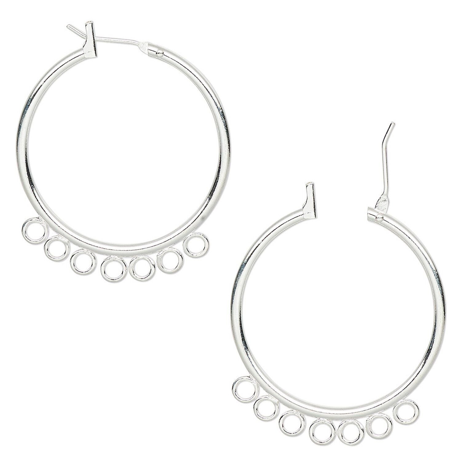 Earring hoop 1pkg10 silver-plated, 29mm round / 3.5mm loop / 7 closed loop, brass 5 pair