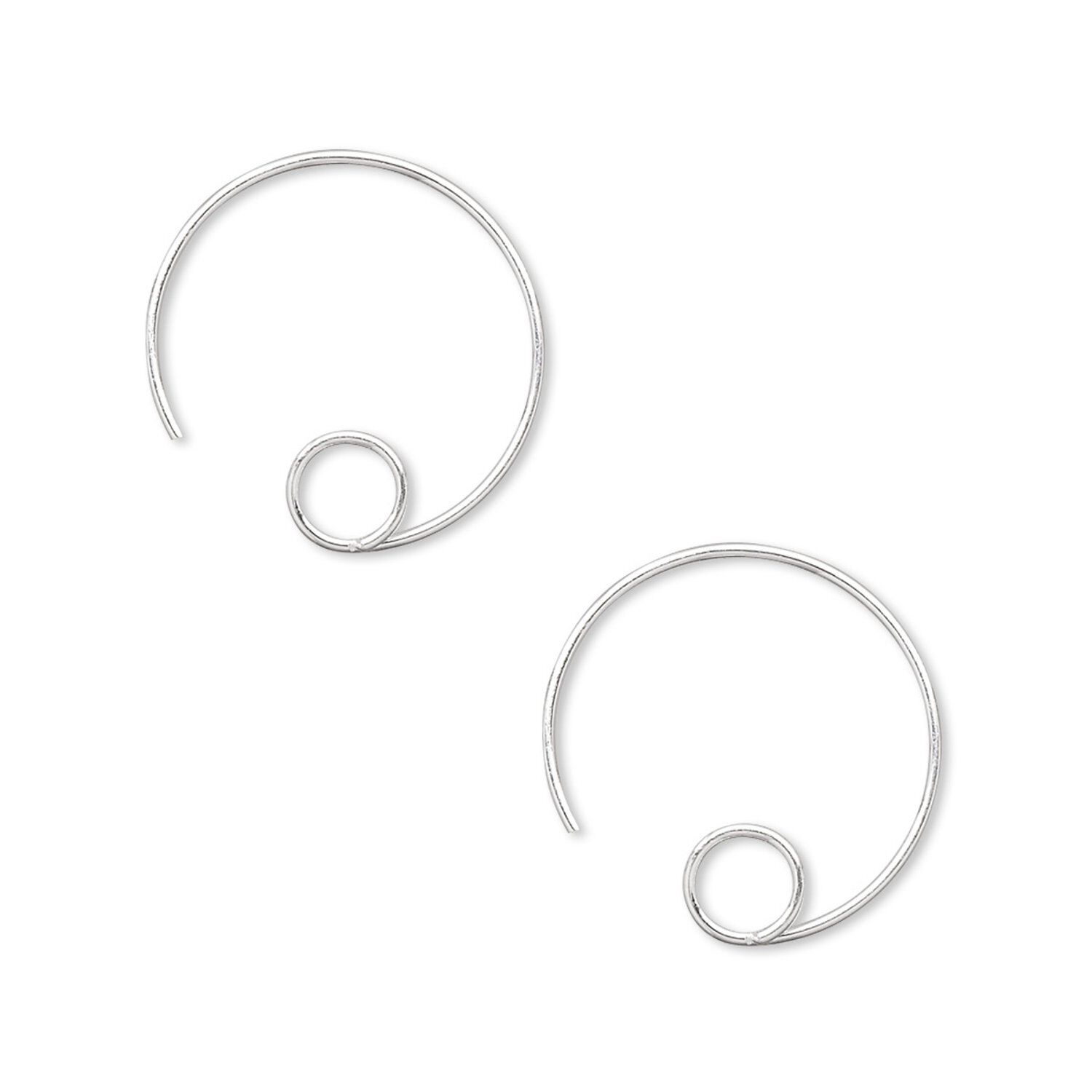 Ear wire 1pkg100 silver-plated, 16mm round hoop / open loop, 22 gauge brass 50 pair