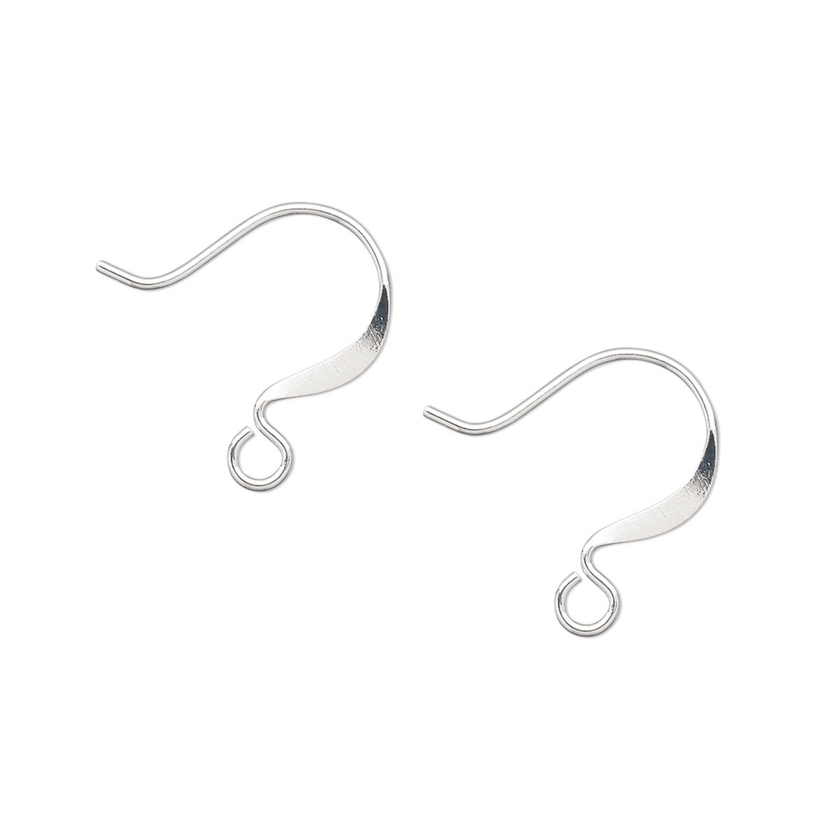 Ear wire fishhook 1pkg100 silver-plated, 15mm flat / open loop, 21 gauge brass 50 pair