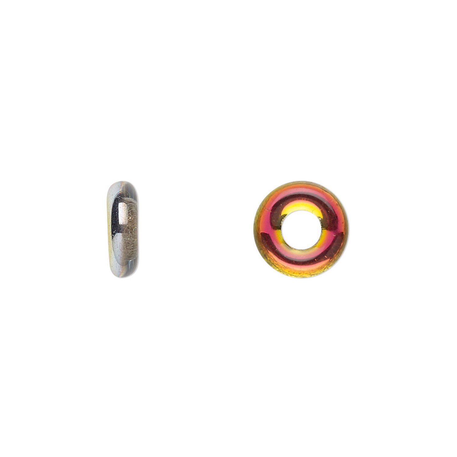Bead, Czech pressed glass, clear vitrail, 9.5x3mm ring. Sold per pkg of 50.