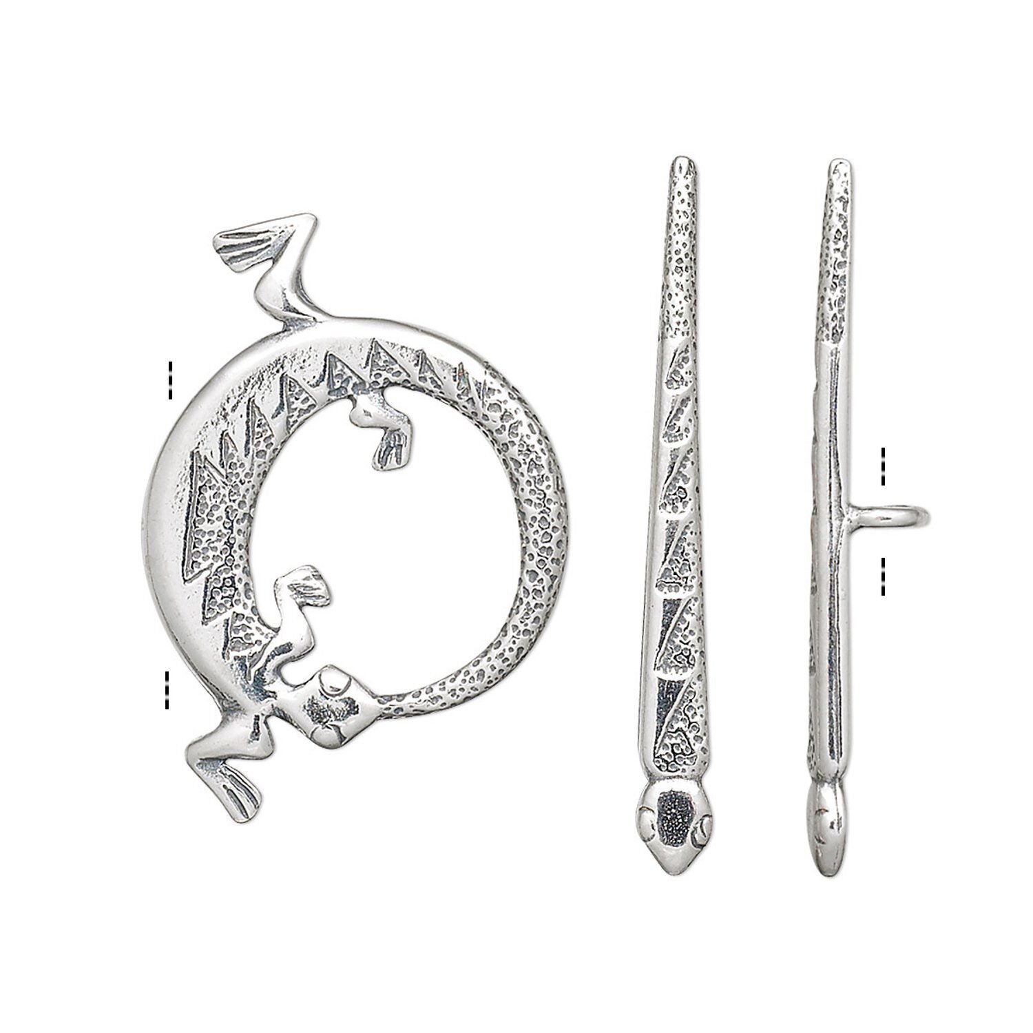 Clasp toggle 1pkg1 sterling silver, 17mm lizard, antiqued JBB Findings 1-strand
