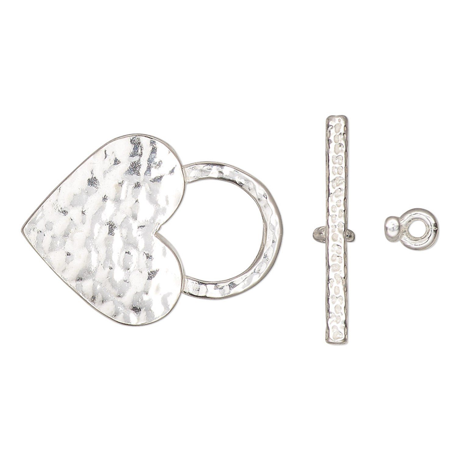 Clasp toggle 1pkg1 sterling silver, 18x16mm textured heart, JBB Findings 1-strand
