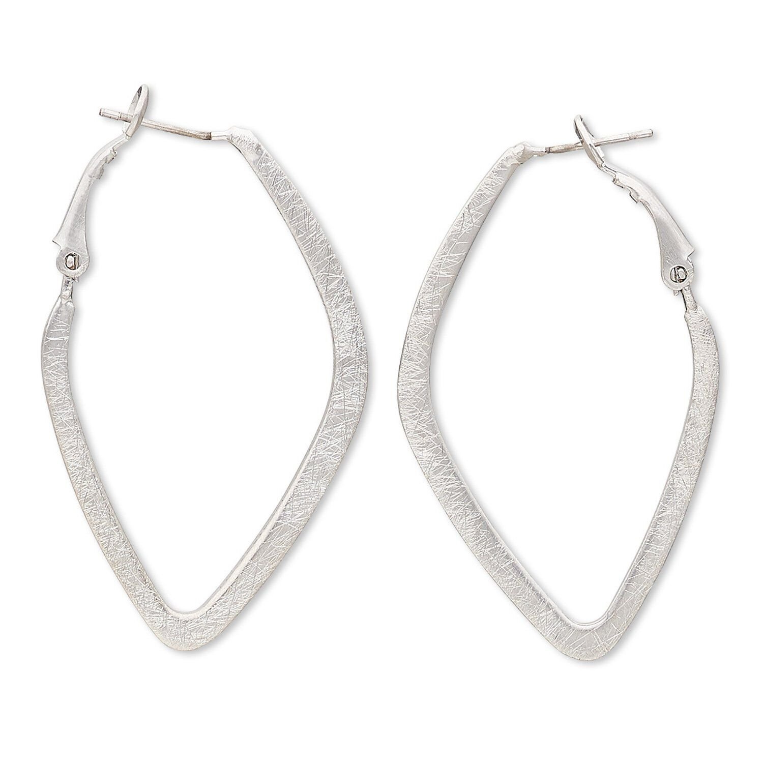 Earring, imitation rhodium-finished steel and brass, 46mm brushed kite hoop with latch-back closure. Sold per pair.