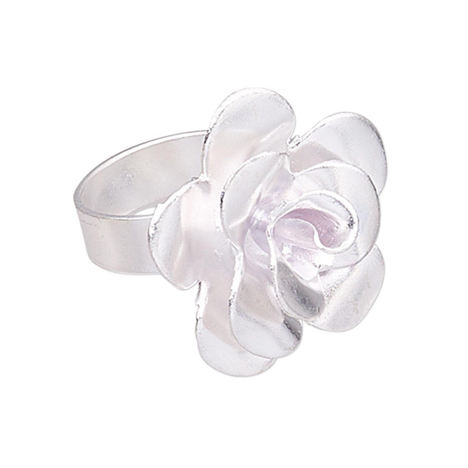 Ring, Hill Tribes, silver-plated copper, 28mm wide with 28x27mm flower, adjustable from size 8 to 9. Sold individually.