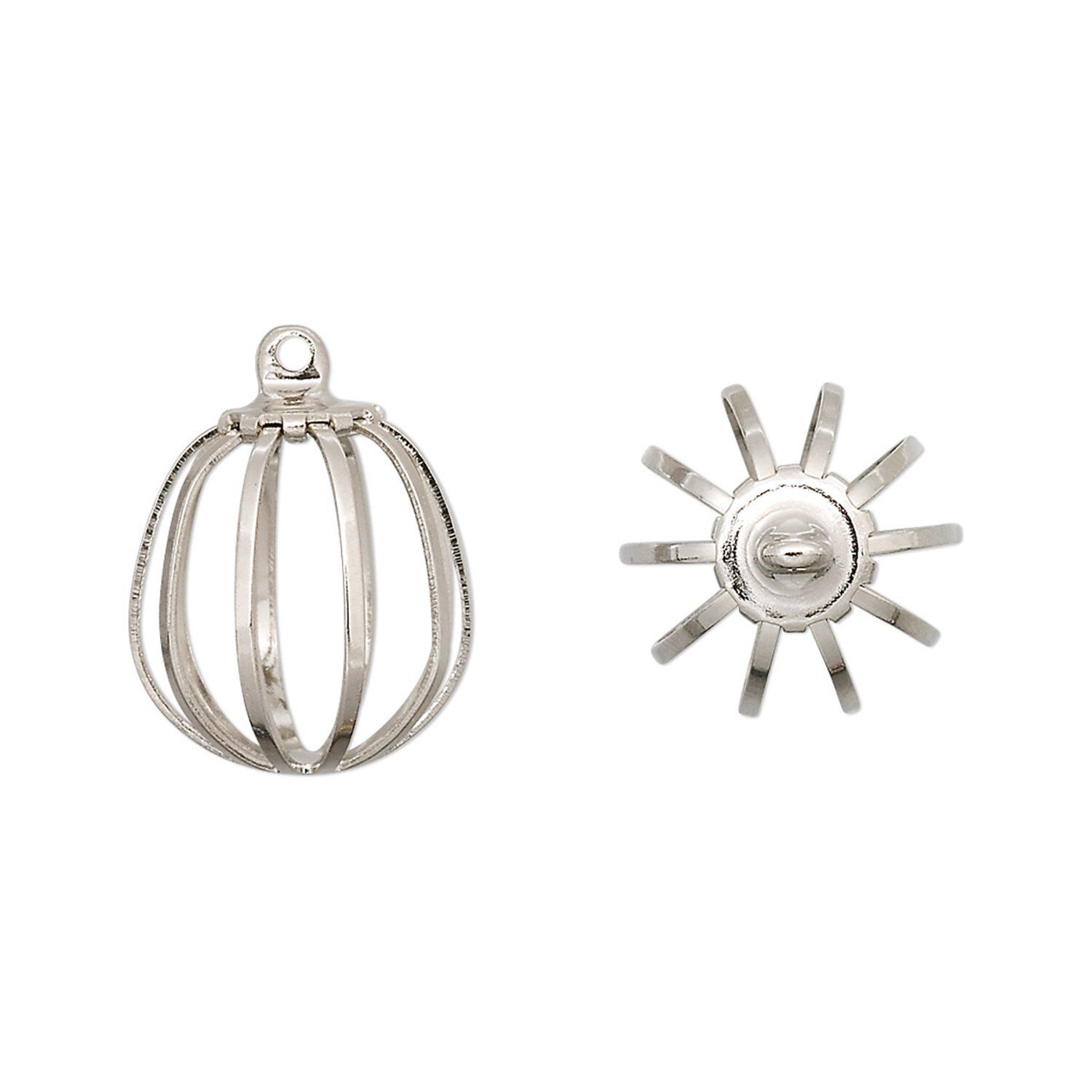 Capture gemstone beads or many other objects with cage-shaped drops. Each imitation nickel-plated steel cage is constructed with a brass loop, and is ideal for embellishing with any number of components. Use by gently spreading the bars of the cage, inserting the object, then gently re-bend the bars to close.