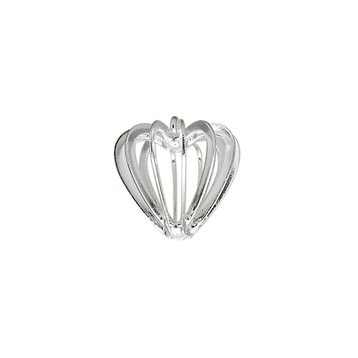 Drop, silver-plated brass and steel, 14mm heart bead cage. Sold per pkg of 100.