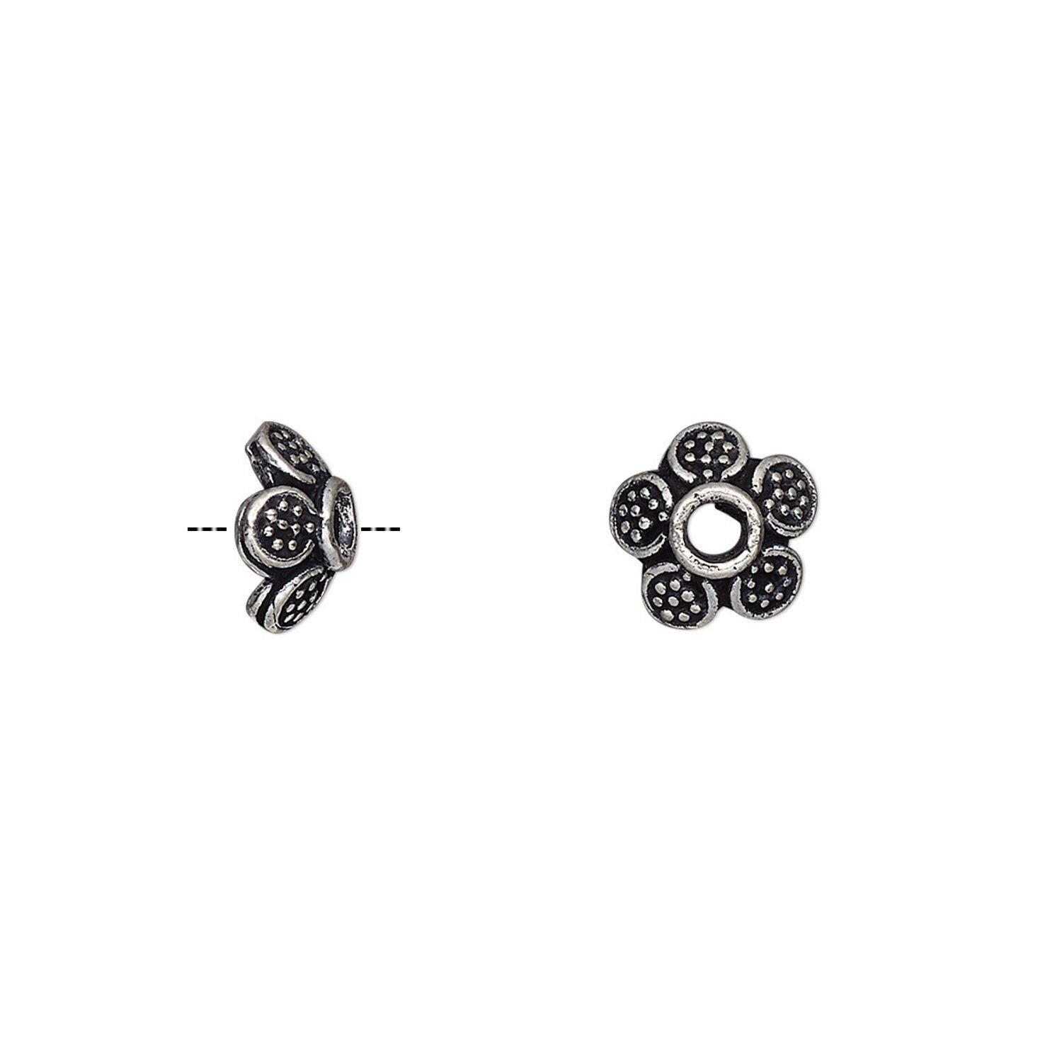 A blend of copper and zinc creates this cool shade of white brass. Antique silver-plated bead caps give everyday jewelry the look of sterling silver at an economical price. Sizes, shapes and colors may vary with handcrafted items.