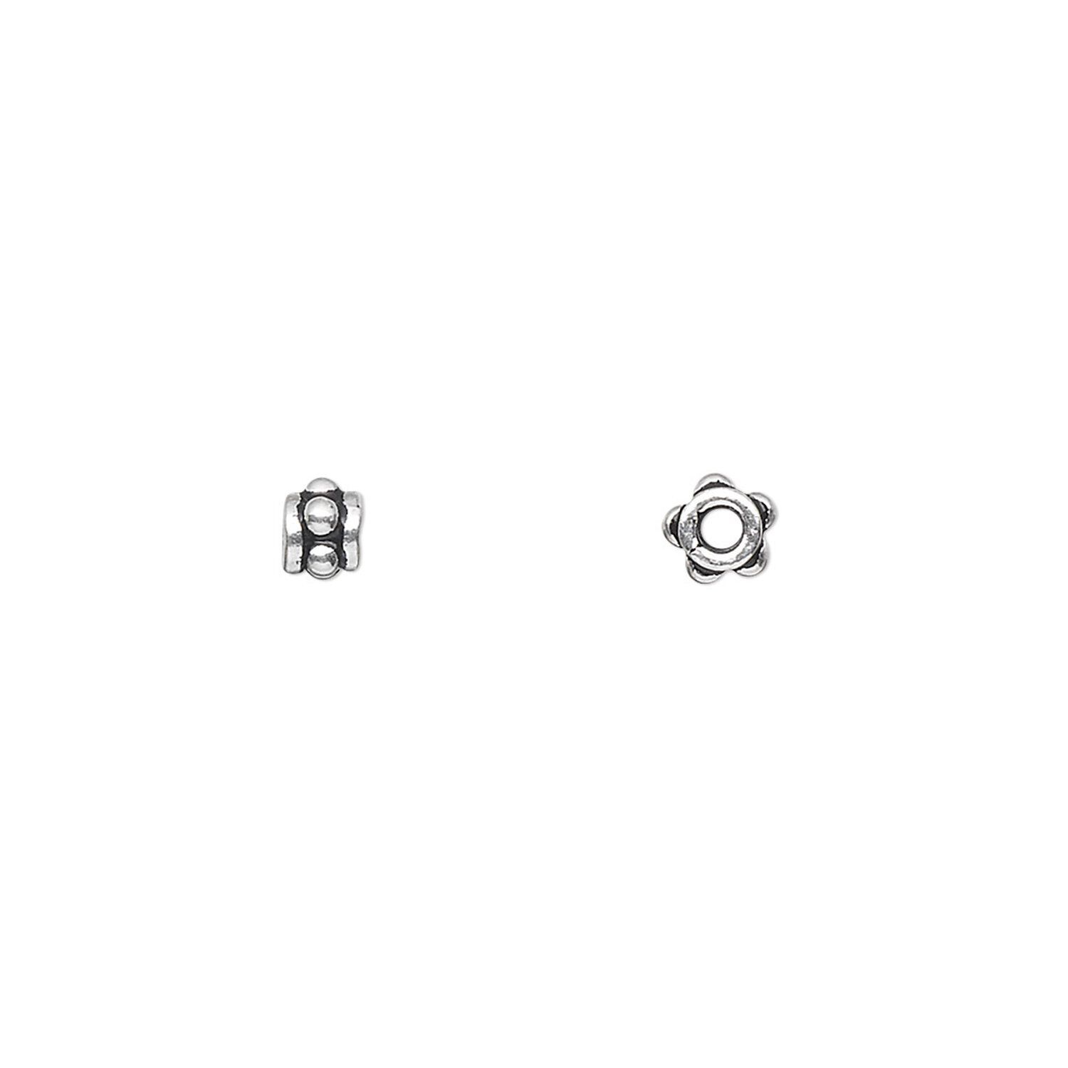 Bead, antiqued sterling silver, 4x3mm beaded rondelle. Sold per 1-troy ounce pkg, approximately 120-140 beads.