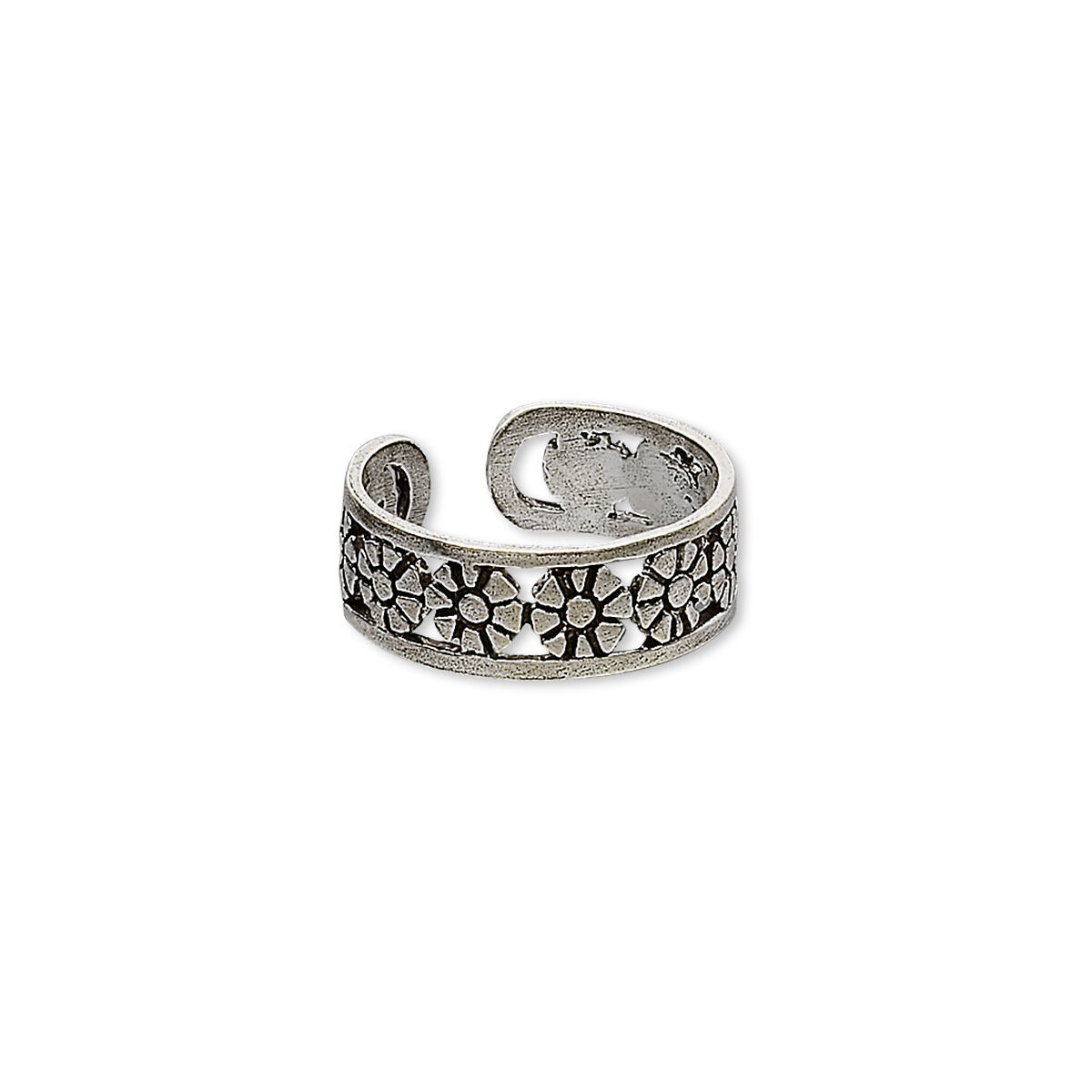 Toe ring, antiqued sterling silver, 5mm wide with flower design, adjustable. Sold individually.