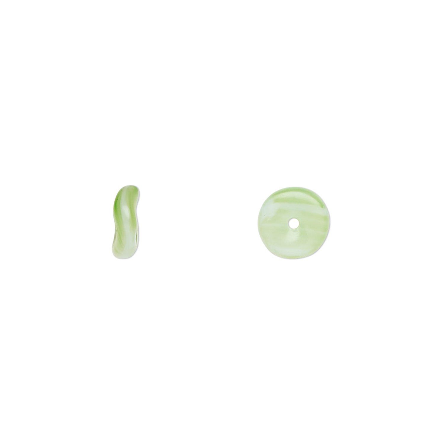 Bead, Czech pressed glass, opaque green/white, 7x3mm rondelle. Sold per 15" to 16" strand.
