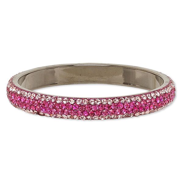Sparkling, ready-to wear bangle bracelet features brilliant light pink and fuchsia Preciosa glass rhinestones hand-set in gunmetal-finished brass. Ideal for gift giving, counter sales or extending current jewelry lines. Sizes, shapes and colors may vary with handcrafted items.