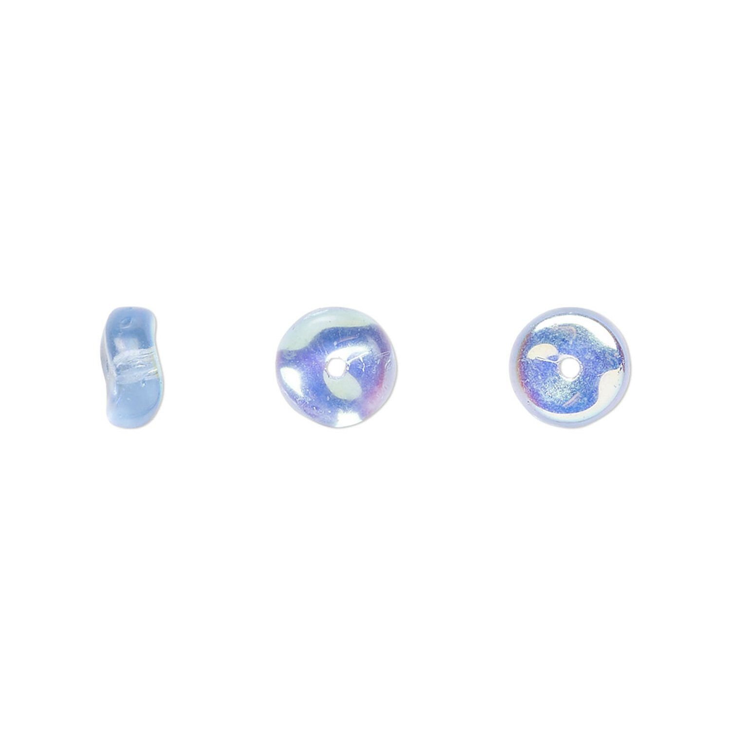 Bead, Czech pressed glass, blue AB, 7x3mm rondelle. Sold per 15" to 16" strand.