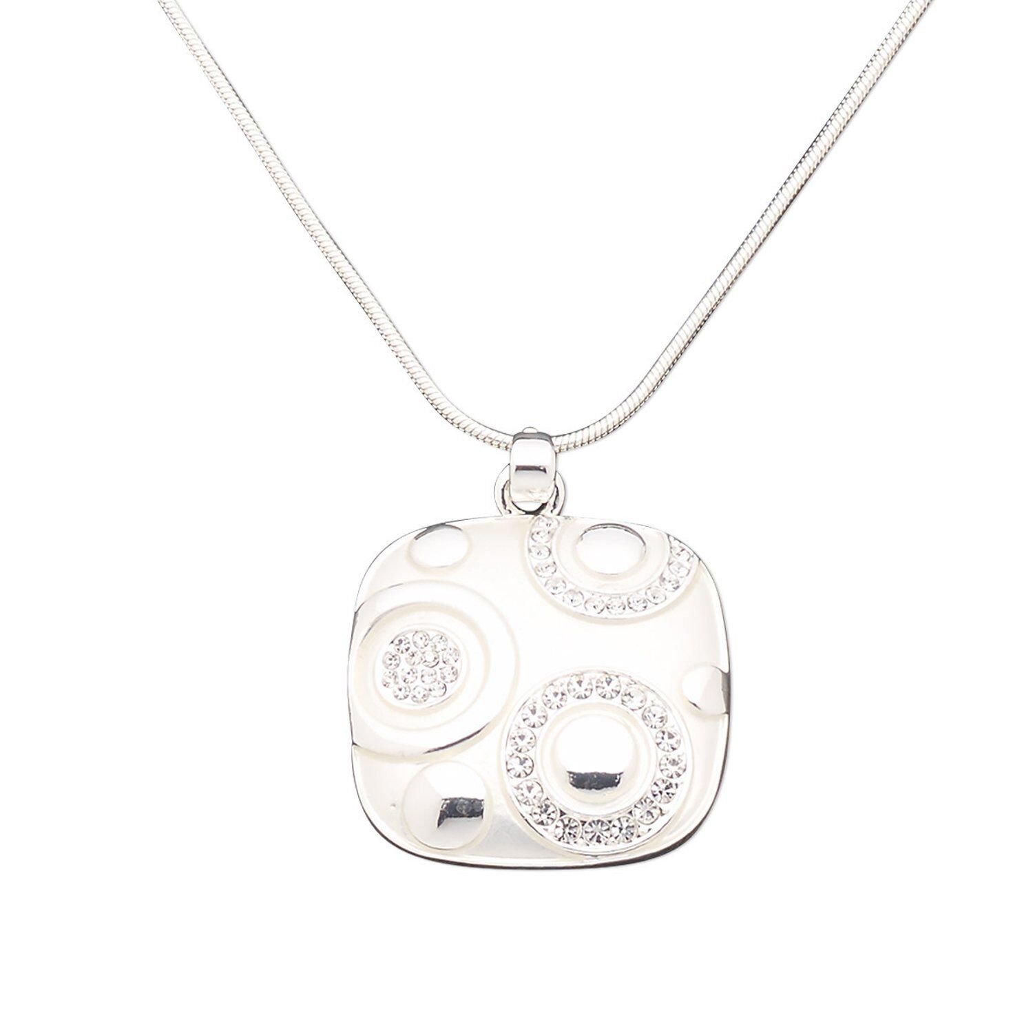 Add a dash of cheerfulness to your style with this silver-plated necklace. A beautiful square pendant with a mixture of matte and shiny surfaces, and glass rhinestones highlight this delightful piece. Ready-to-wear jewelry is great for a gift or counter sales.