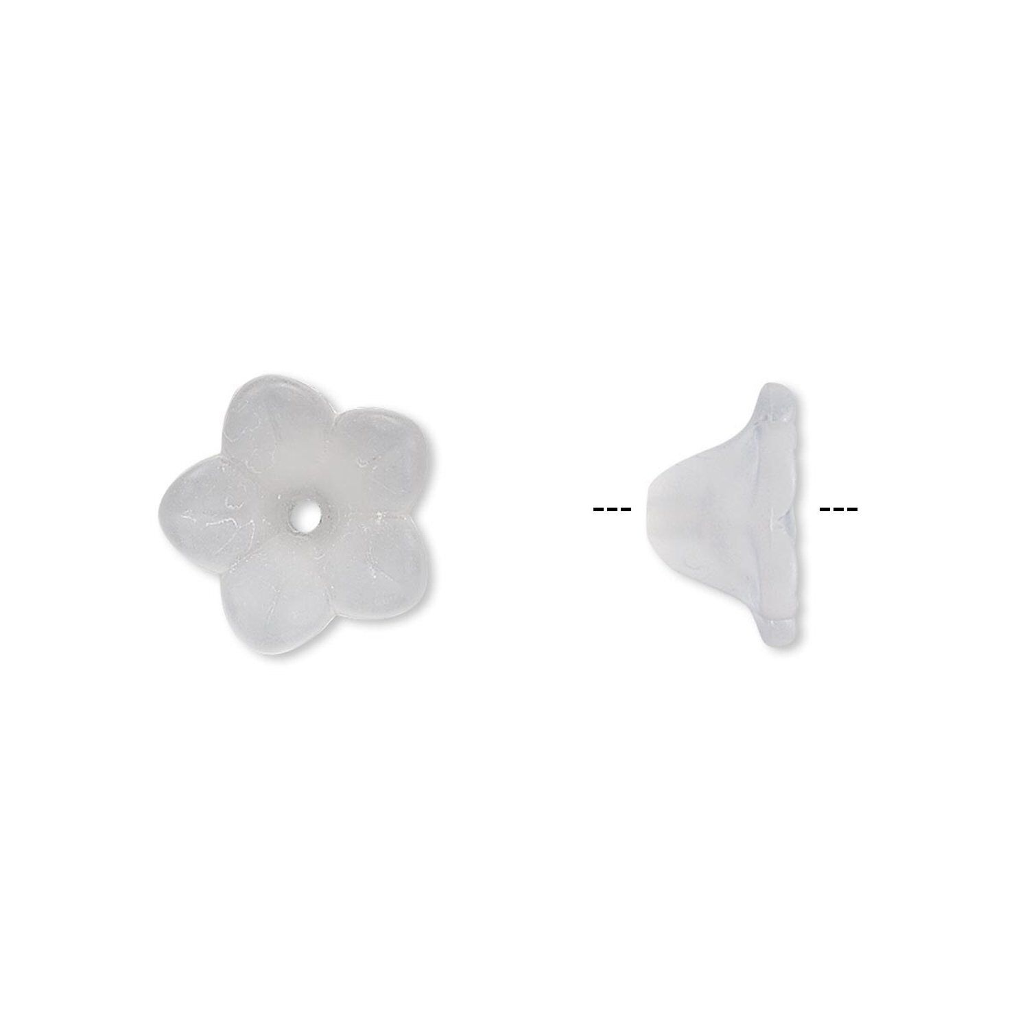 Lightweight acrylic flower with frosted, textured petals has a center stringing hole. Ideal for nature-themed jewelry designs. Colors, shapes and sizes may vary in each lot.