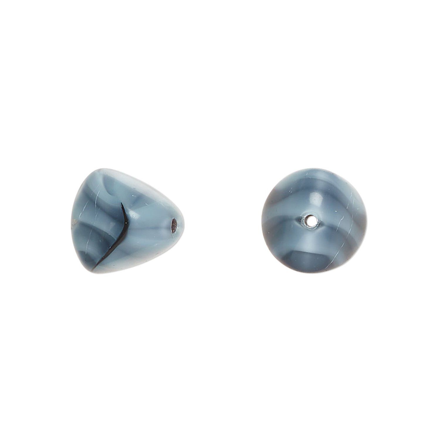 Bead, Czech pressed glass, light blue/black, 12x11mm trigon. Sold per 15" to 16" strand.