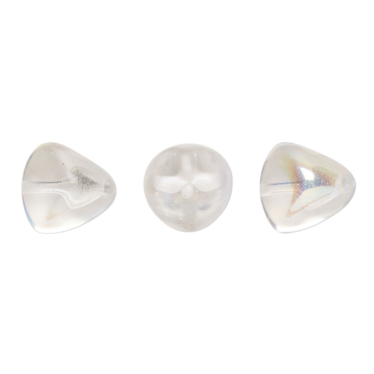 Bead, Czech pressed glass, crystal AB, 12x11mm trigon. Sold per 15" to 16" strand.