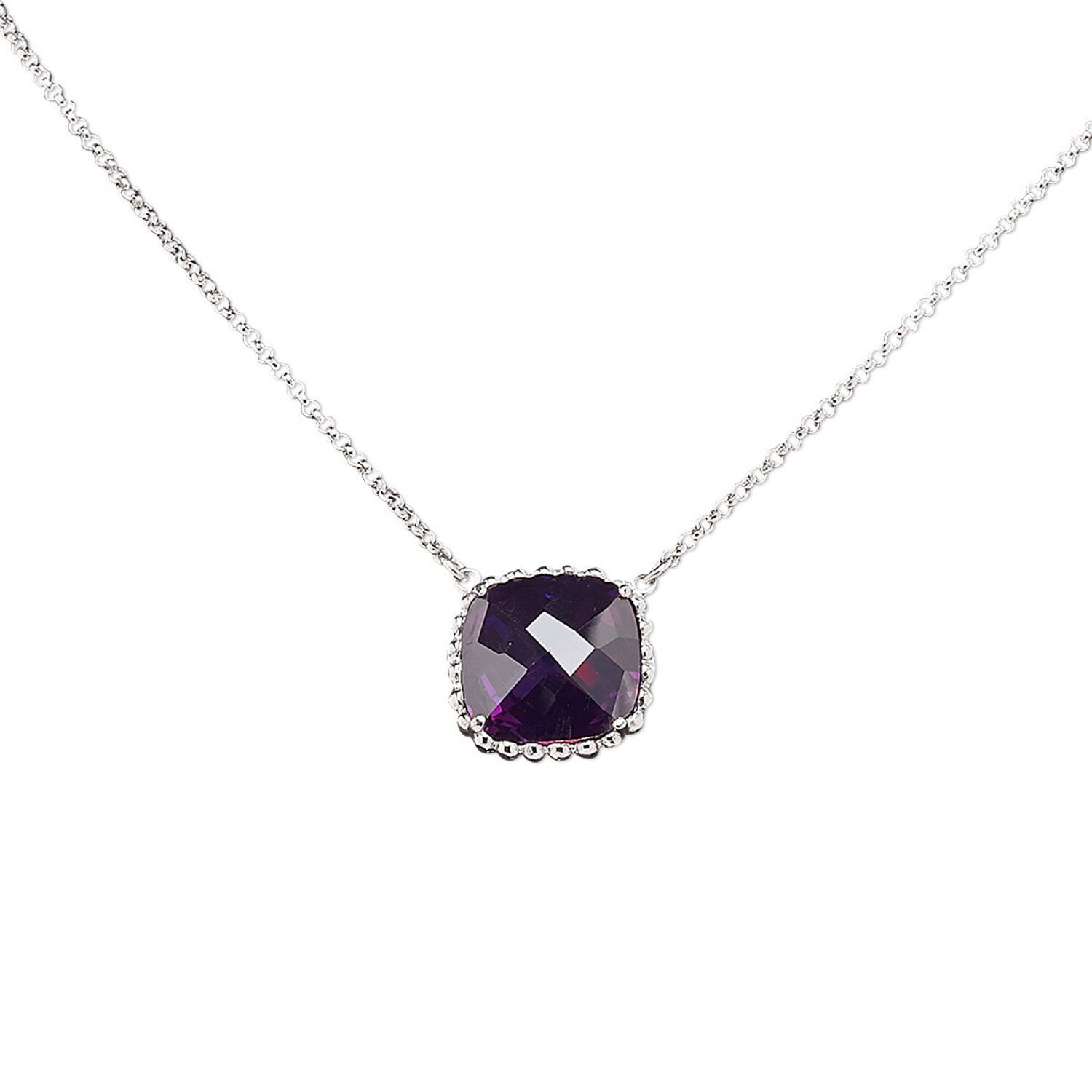 Set in a classic beaded bezel, ready-to-wear necklace features a sparkling amethyst purple drop that will add a touch of elegance to wardrobe or fashion displays. Ideal for gift-giving, counter sales or extending current jewelry lines.