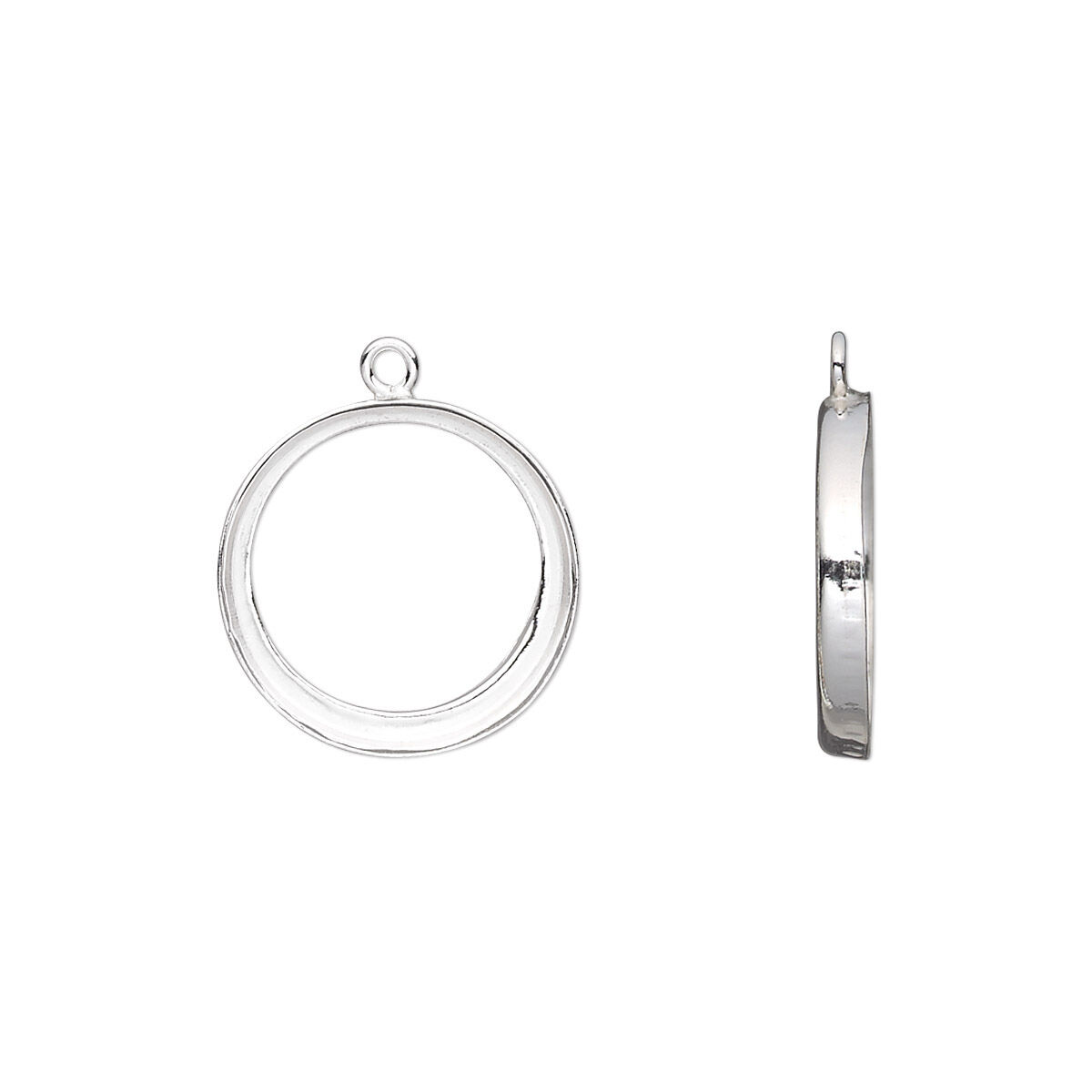 Drop, fine silver, 14.5mm round with 14mm round bezel setting. Sold per pkg of 2.
