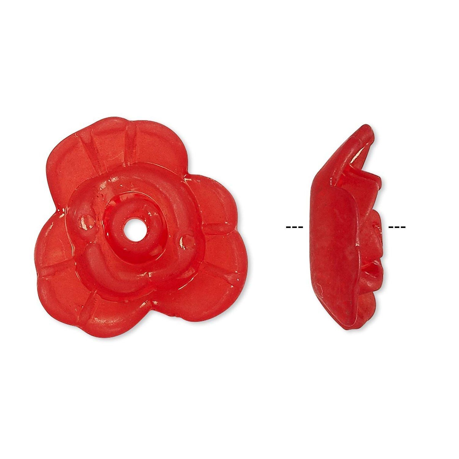 Lightweight acrylic flower with frosted, textured petals has a center stringing hole. Ideal for nature-themed jewelry designs. Colors, shapes and sizes may vary in each lot.