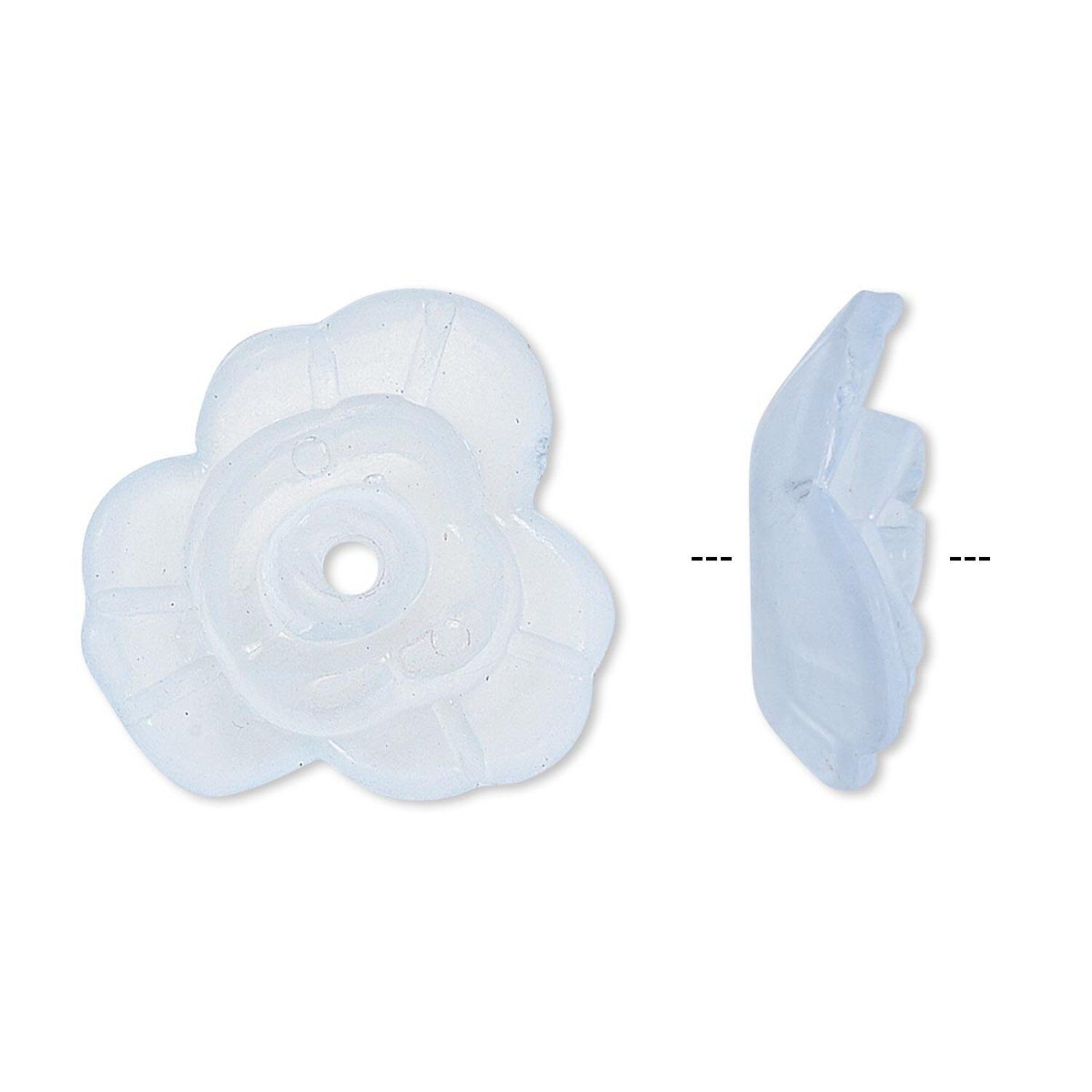 Lightweight acrylic flower with frosted, textured petals has a center stringing hole. Ideal for nature-themed jewelry designs. Colors, shapes and sizes may vary in each lot.