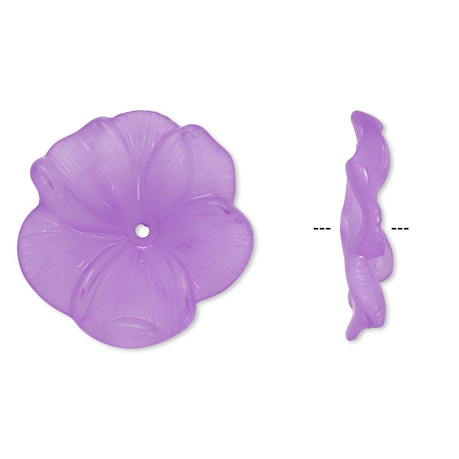 Lightweight acrylic flower with frosted, textured petals has a center stringing hole. Ideal for nature-themed jewelry designs. Colors, shapes and sizes may vary in each lot.