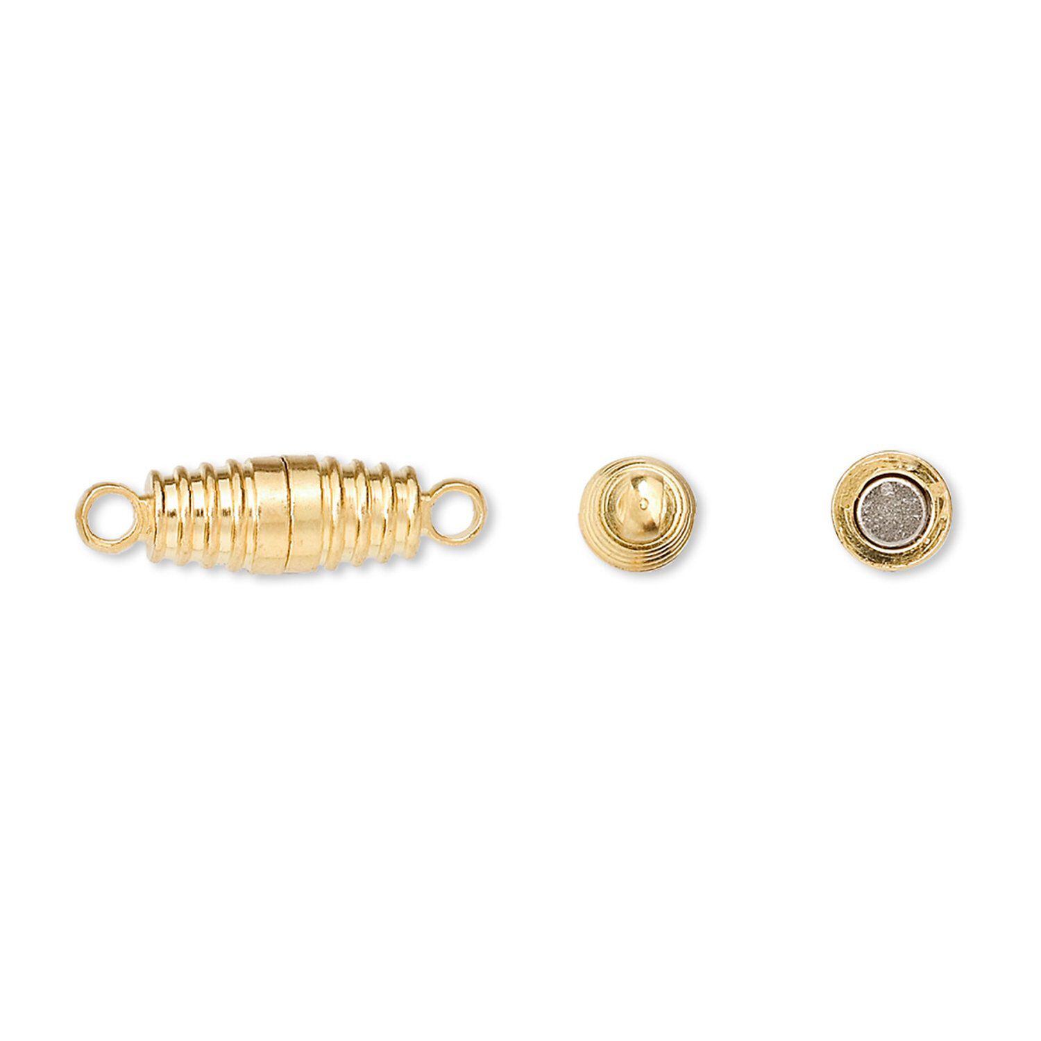 Clasp magnetic 1pkg100, 11x5mm oval, gold-finished brass 1-strand